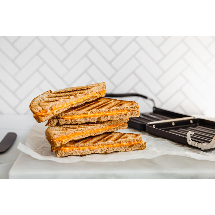 The Revolution Panini Press for Revolution InstaGLO™ Toasters expands the versatility of your toaster to create endless toasty delights for breakfast, lunch, dinner or snacks. Thoughtfully designed to be safe, fast, easy, and small enough to store in a drawer. Gone are the days of lugging out a clunky griddle, countertop press or frying pan and creating a mess just to sizzle up your favorite melt. Get ready to create amazing sandwiches, quesadillas and wraps that are crispy on the outside, warm and melty on the inside, now faster and easier than ever before!