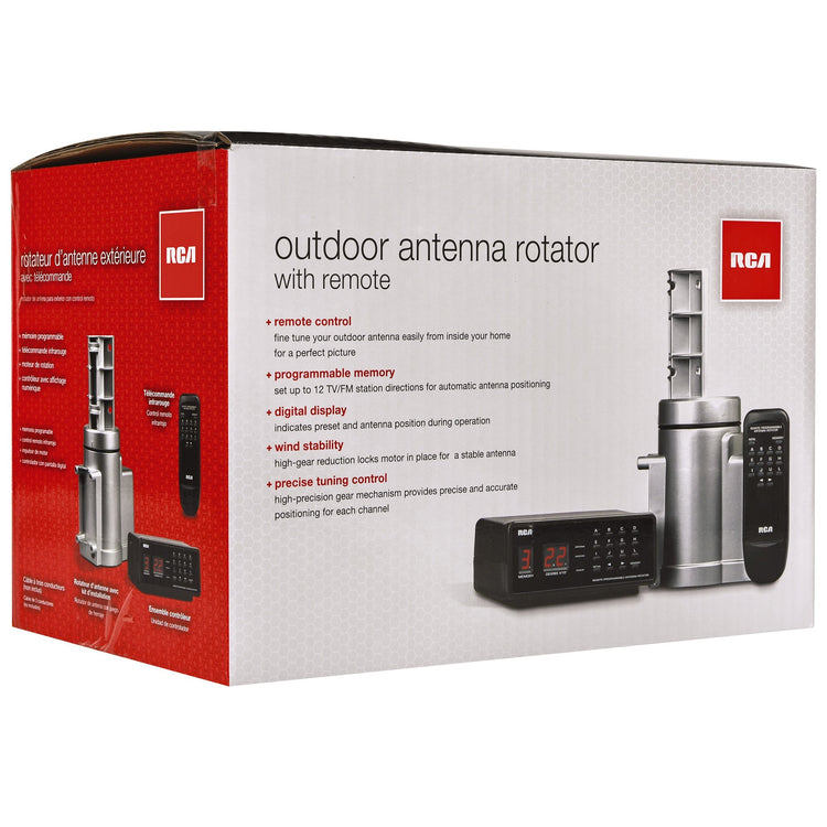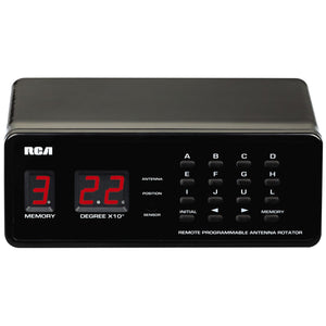 Fine tune your outdoor antenna from inside your home with this remote-controlled antenna rotator. With a programmable memory, you can set up to 12 TV/FM station pre-sets for automatic antenna positioning. The motor drive provides wind stability by locking in place for a stable antenna and a perfect picture. Use the digital display to choose a pre-set and position the antenna during operation.