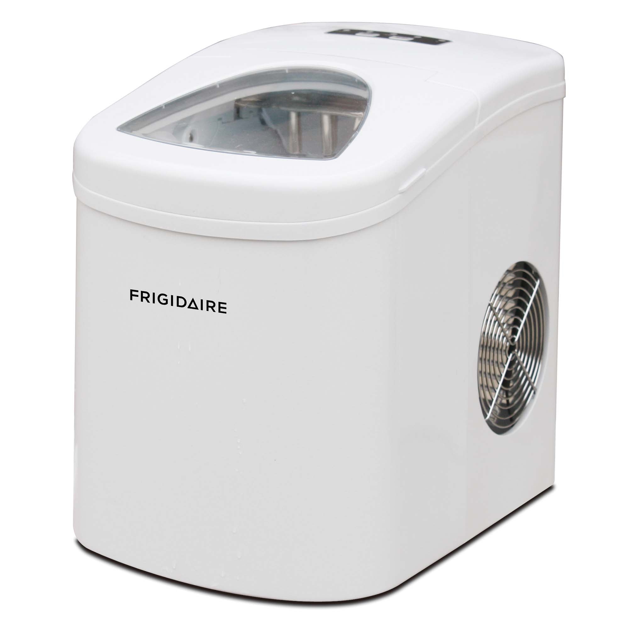 Frigidaire's 26 lbs. Freestanding Ice Maker in White is the ideal solution for all your ice making needs. Its compact and contemporary design makes it easy to transport and stylish to display. With a 2.65 lbs. ice cube basket capacity, this ice maker conveniently saves space in your freezer for other food. In just 6 minutes, you can make ice cubes for parties or to cool your drinks on hot summer days.