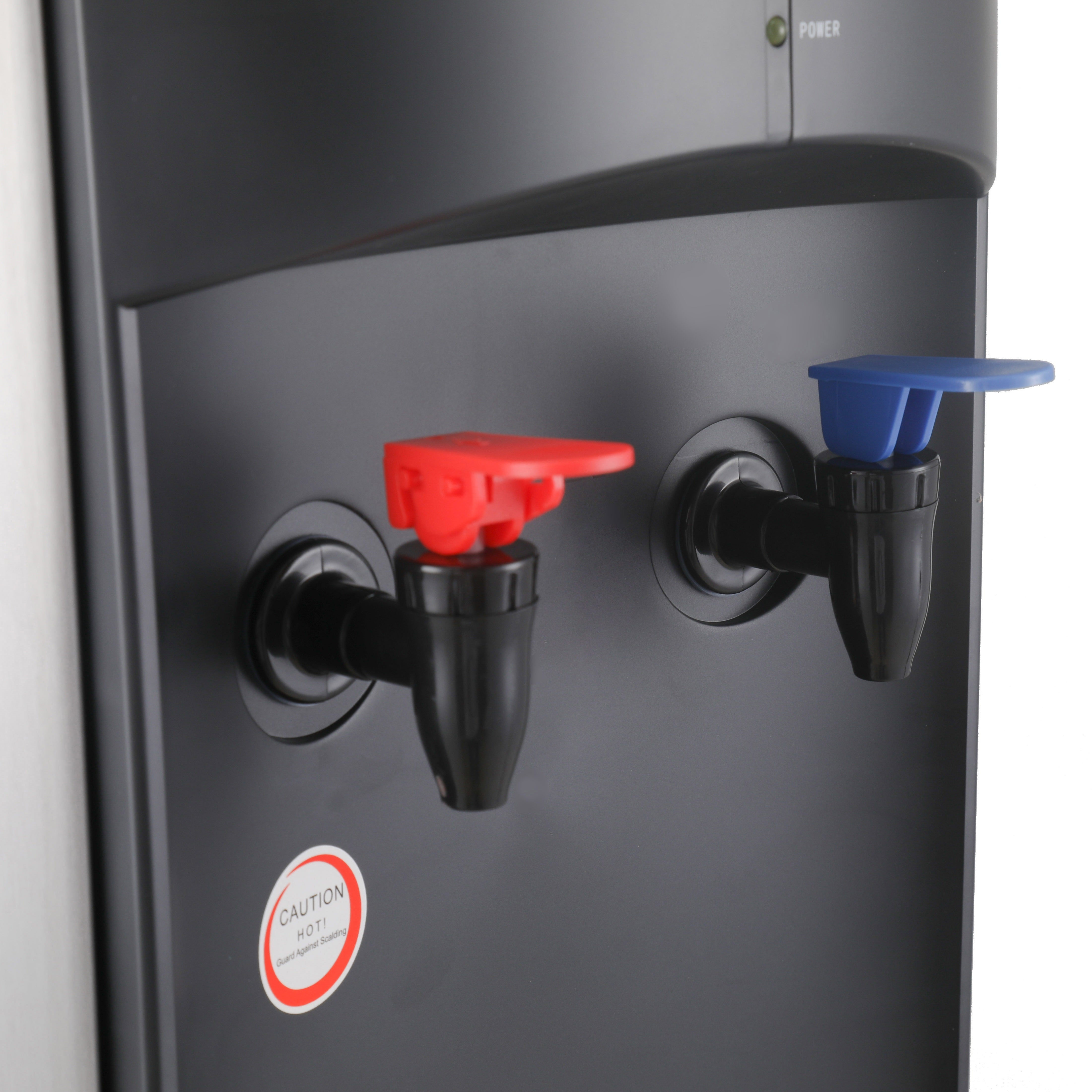 - Dual dispensing of hot and cold water, with safety lock for hot button