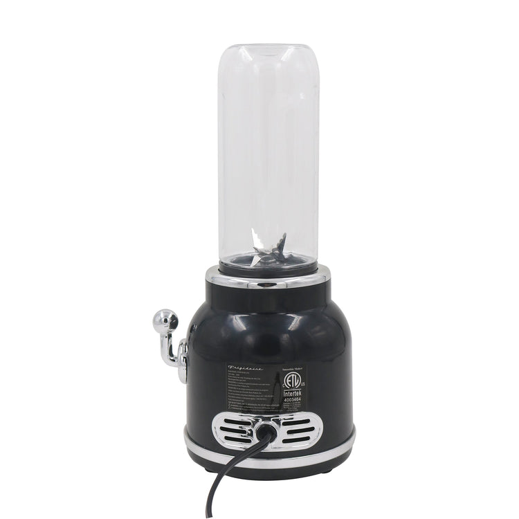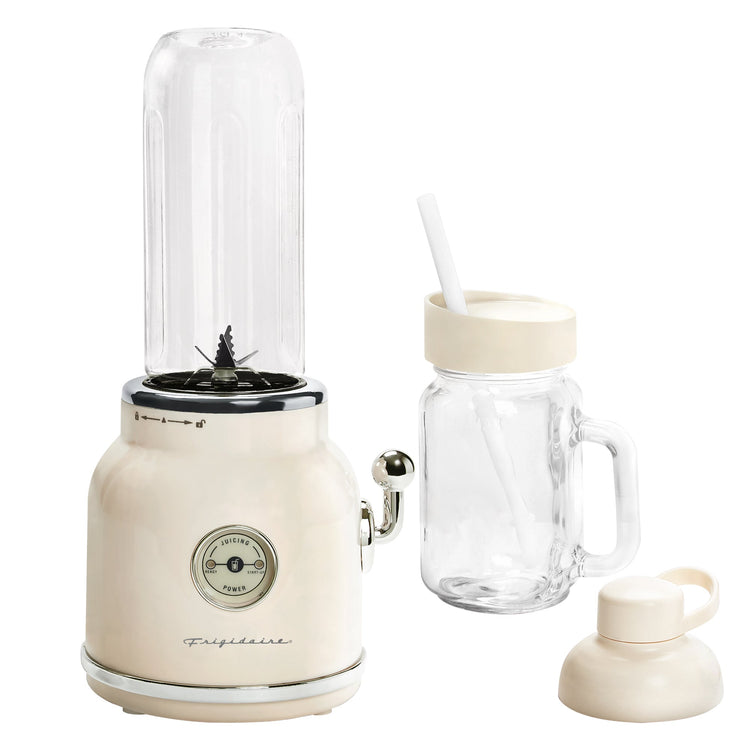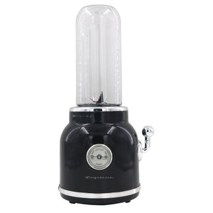 Experience blending with portability and ease using the Frigidaire 300W Retro Smoothie Maker with portable glass jar or BPA free mason jar style mug. This smoothie maker allows you to make healthy and delicious drinks, smoothies, cocktails and more at any time of the day. Perfect for personal use, office, and gym use, you can use this electric smoothie maker to make yourself a yummy and fruity smoothie or milkshake. It is equipped with powerful rotating motors. The device can whip up and crush ingredients in less than a minute.