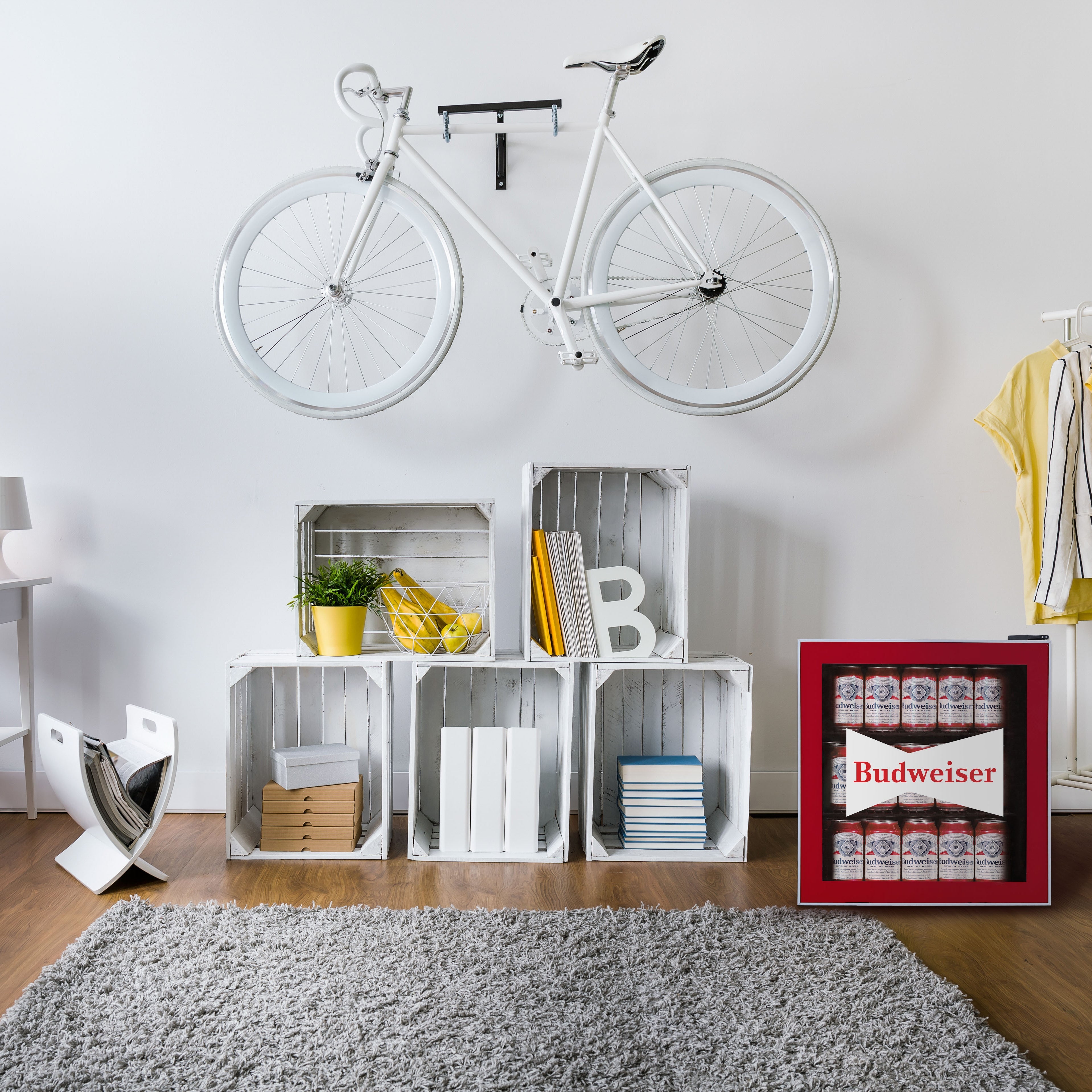 Keep up to 70 cans or 17 bottles cool with your stylish Budweiser bar fridge.