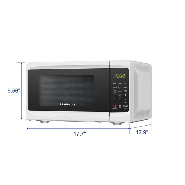 Get efficient cooking with the Frigidaire 0.7 cu. ft. Microwave. It has 700 watts of cooking power and 10 power levels. The size accommodates many different sizes of dishes, while six 1-touch menu options offer you easy operation. More user-friendly features include a glass turntable for cooking food evenly and an interior light for easy viewing. Available in Black and White.