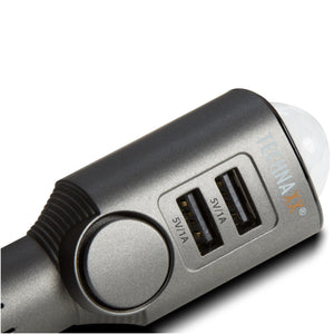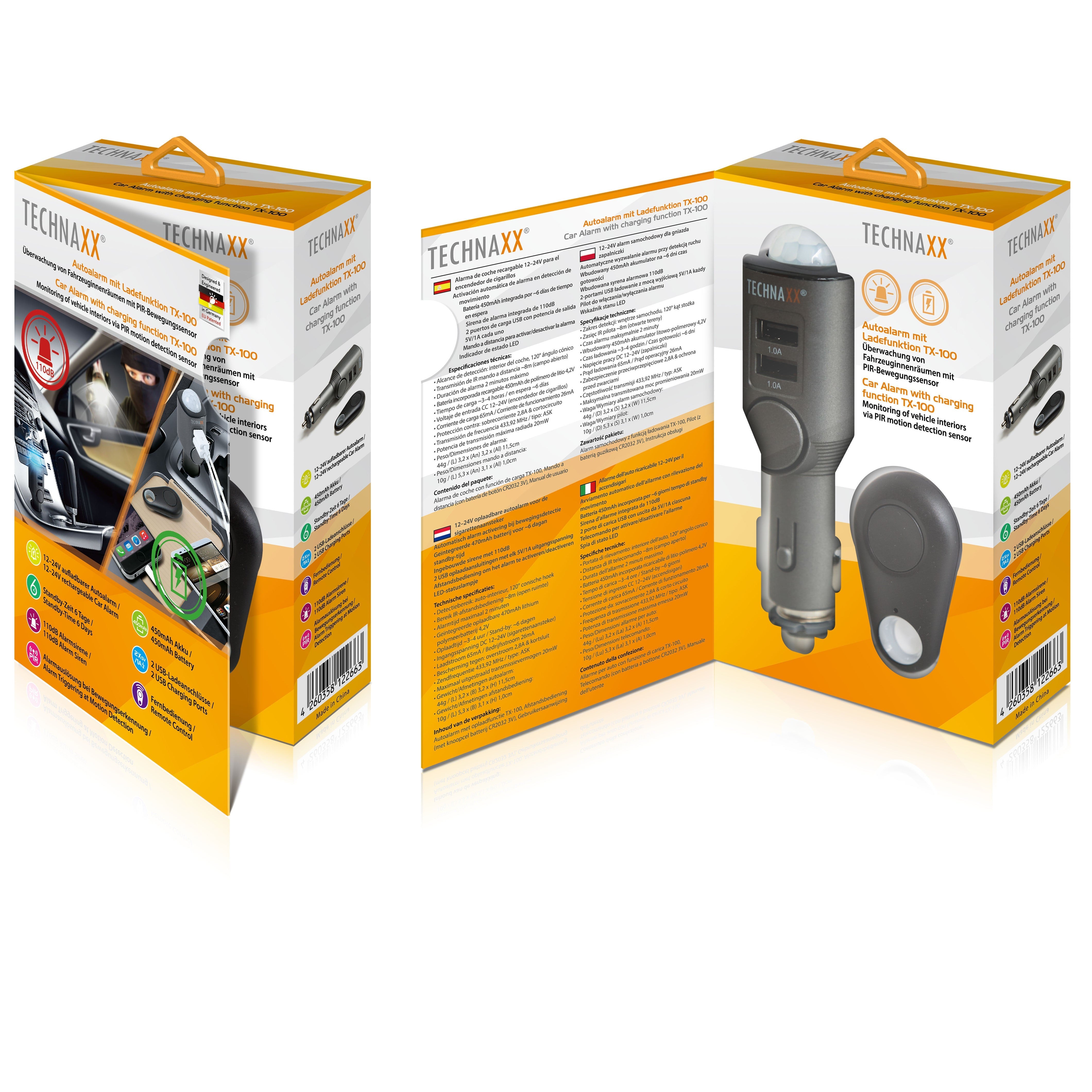 Ideal for use as alarm inside the car, at home, camping, trailer, boat or open spaces! It charges from a 12–24V cigarette lighter socket. The alarm triggers automatically with motion detection. You can activate/deactivate the alarm with the remote control. It also has 2 USB charging ports for your convenience.