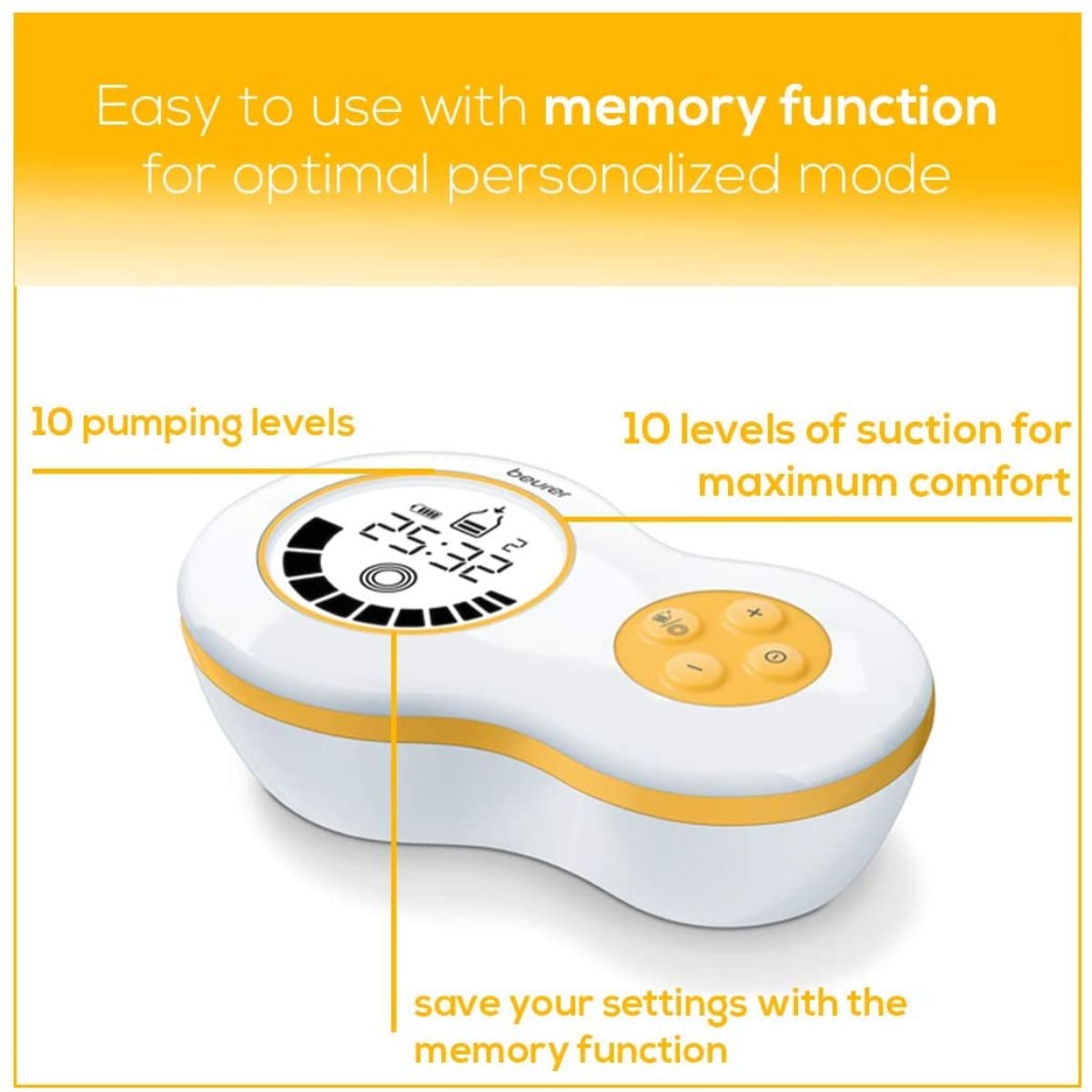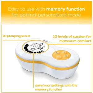 Free the pump. German engineered and designed - making it the ideal breast pump for mothers. The double electric breast pump pumps milk comfortably and can be used as a dual pump or single pump. The unit utilizes vacuum technology, for powerful suction - while maintaining a comfortable pump for you, and making it a shorter pumping time than a conventional pump. The comfortable vacuum technology ensures the most natural possible simulation of the drinking process. Breastfeeding mothers can pump their milk easily and conveniently at home or on the go with our dual by70 milk pump. The breast pump includes a travel tote bag, making it easy to carry with you - whether to go to the doctor's office, run errands, or keep it easily organized at home. Make it personalized there's no one way to do things, breast pumping included. Which is why we've made it completely customizable for all of the moms out there! the pump features 10 stimulation levels and 10 pumping levels - leaving it completely personalized. More so, we've included a memory function - which saves your last used stimulation and pumping levels for the future - so that breastfeeding is seamless and you are always comfortable. Accessories included tote bag 2 bottles matching screw plugs for bottles 2 bottle holders 2 silicone cups manual pump handle compatible with AVENT and NUK bottles ***BPA free specifications: double electric pump memory function: saves last settings automatically vacuum technology mains or battery operated 4 x aa batteries included