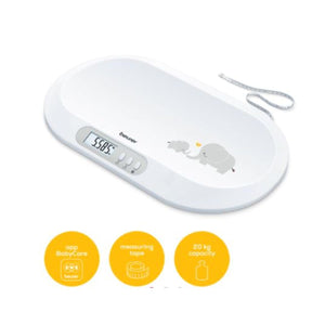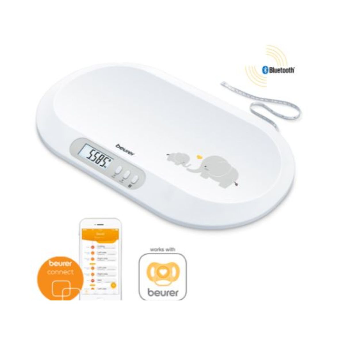 Monitor Your Baby's Growth, The Smart Way. We've designed the Beurer BY90 - so that parents can have ease of mind & can monitor & track their baby's growth & development at home, and have it all stored in their 'beurer BabyCare' app. The Beurer BY90 keeps you informed of the physical development of your baby with weight & height, thanks to the built-in tape measure. We've designed this scale to be comfortable for both the parent & baby - featuring an easy to read, large LCD display & a curved weighing platform. With the tare function, you can achieve accurate measurements while even putting the baby’s favorite blanket or toy on the scale to make it even more comfortable, & have less fuss. The scale has a weight capacity of 45 lbs & measures in 0.2 oz increments, for max. accuracy. The BY90 features a 10 memory capacity for tracking previous measurements over time. For more convenience, the scale syncs the measures values via Bluetooth to your smartphone. Beurer BabyCare App: The 'beurer BabyCare' app allows you to both monitor the development of your child's height and weight while also helping you to monitor your baby's development with other relevant information to log. Information such as behavior, food intake, or general health comments/notes. This allows you to keep track of your baby's physical health & behaviors all in one place and makes it easy to share with your pediatrician. *You can also use the baby scale without the app, if desired.