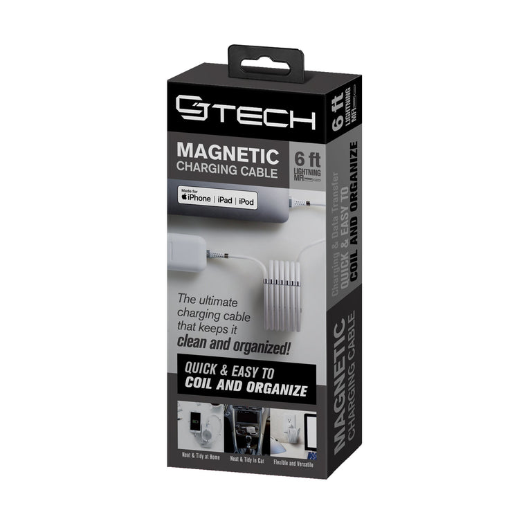 Experience Lightning MFI charging made easy with built-in cable management via magnetic strips allowing your charger to self coil. Made for easy storage and tidy appearance when in use, the magnetic charging cable can be used at home, in the car, or in the office to simplify your life! Keep messy cords at bay.