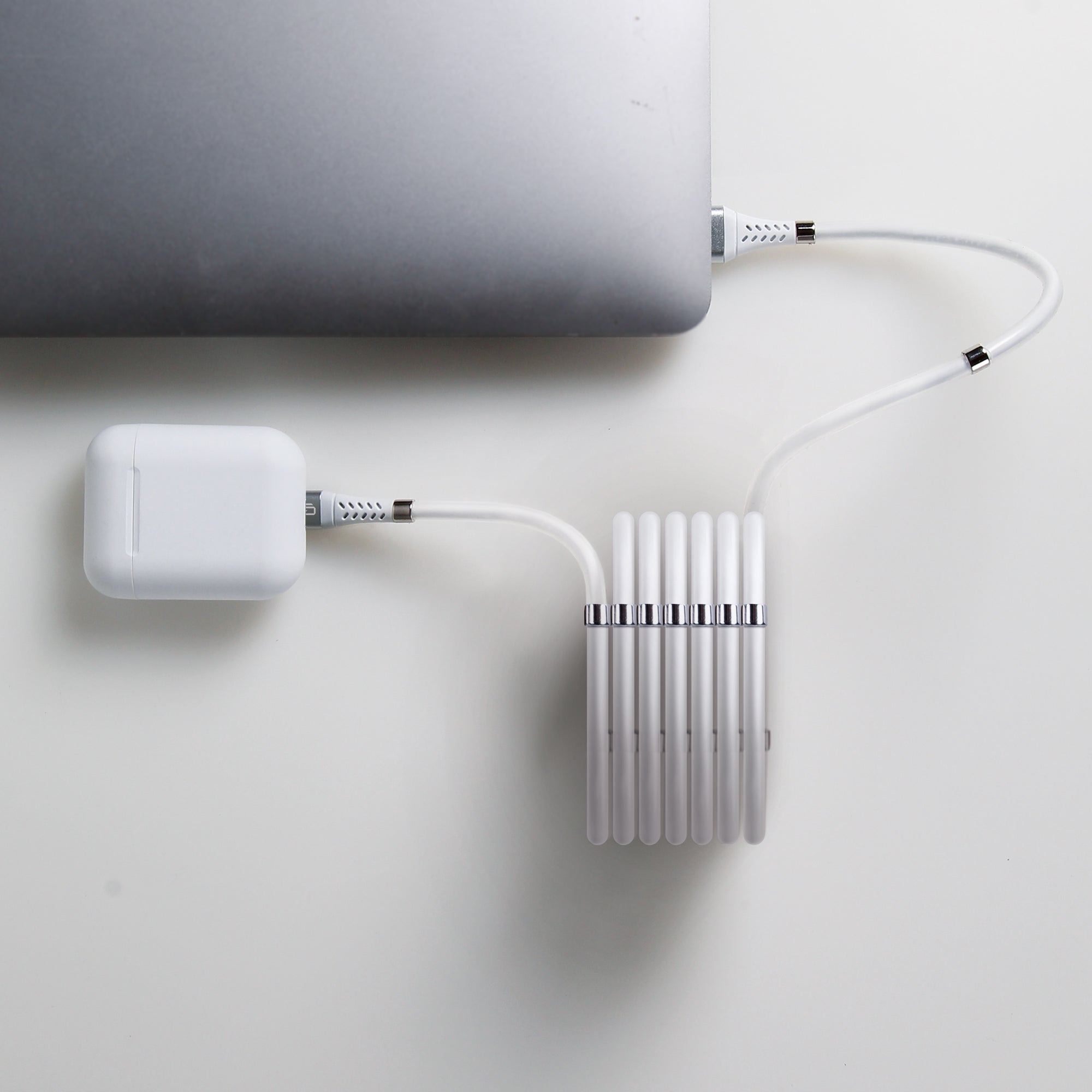 - The cables have magnets that are placed along the cable that allow it to self coil