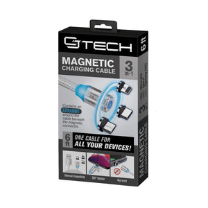 - 1 x CJ Tech Magnetic Tip 3 in 1 Universal Charging Cable with LED Light - 6FT