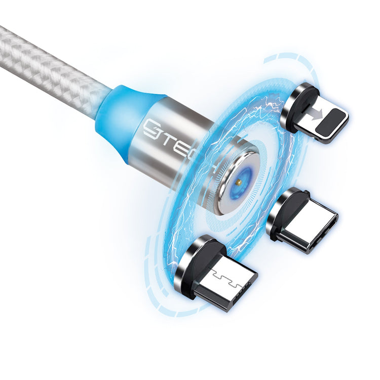 These 3 in 1 magnetic tip LED light charging cables include 3 tips (Interchangeable Lightning, Type C and Micro USB).