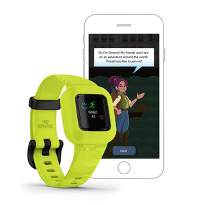 Vivofit Jr. 3 isn’t just a fitness tracker for kids. It’s an interactive experience where your child’s activity unlocks educational globe-trotting app adventures. Featuring a colourful display, this kid-tough, swim-friendly fitness tracker gets up to 1 year of battery life. With it, playtime unlocks educational adventures, games and icons by completing 60 minutes of daily activity.