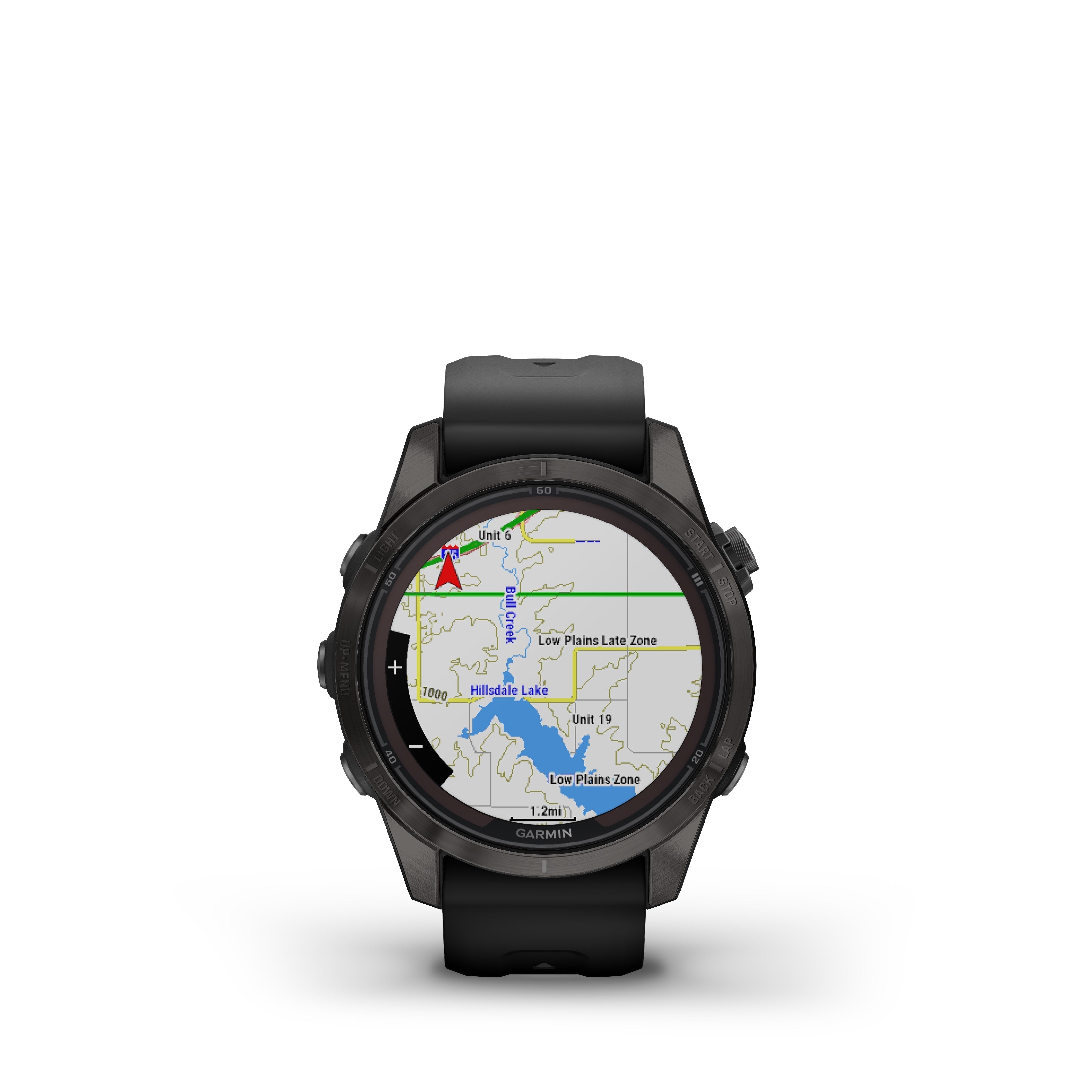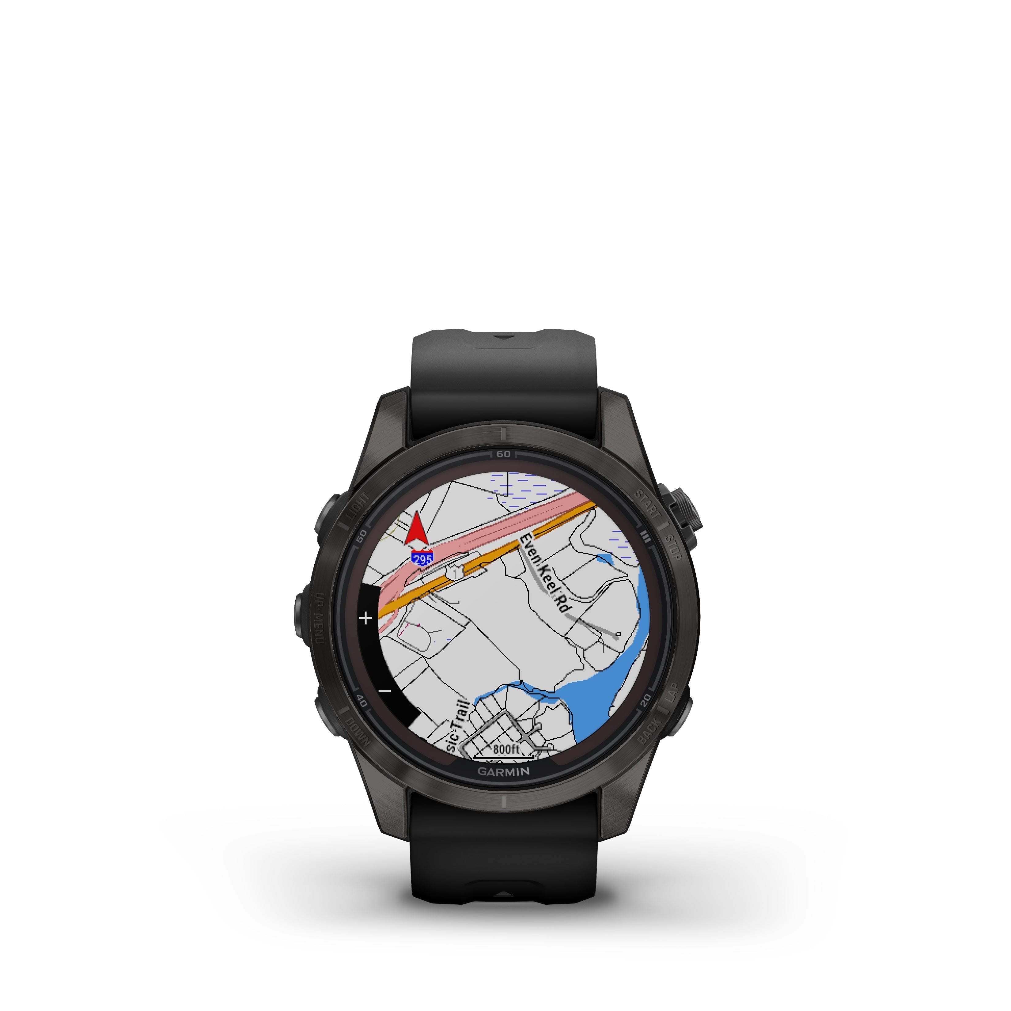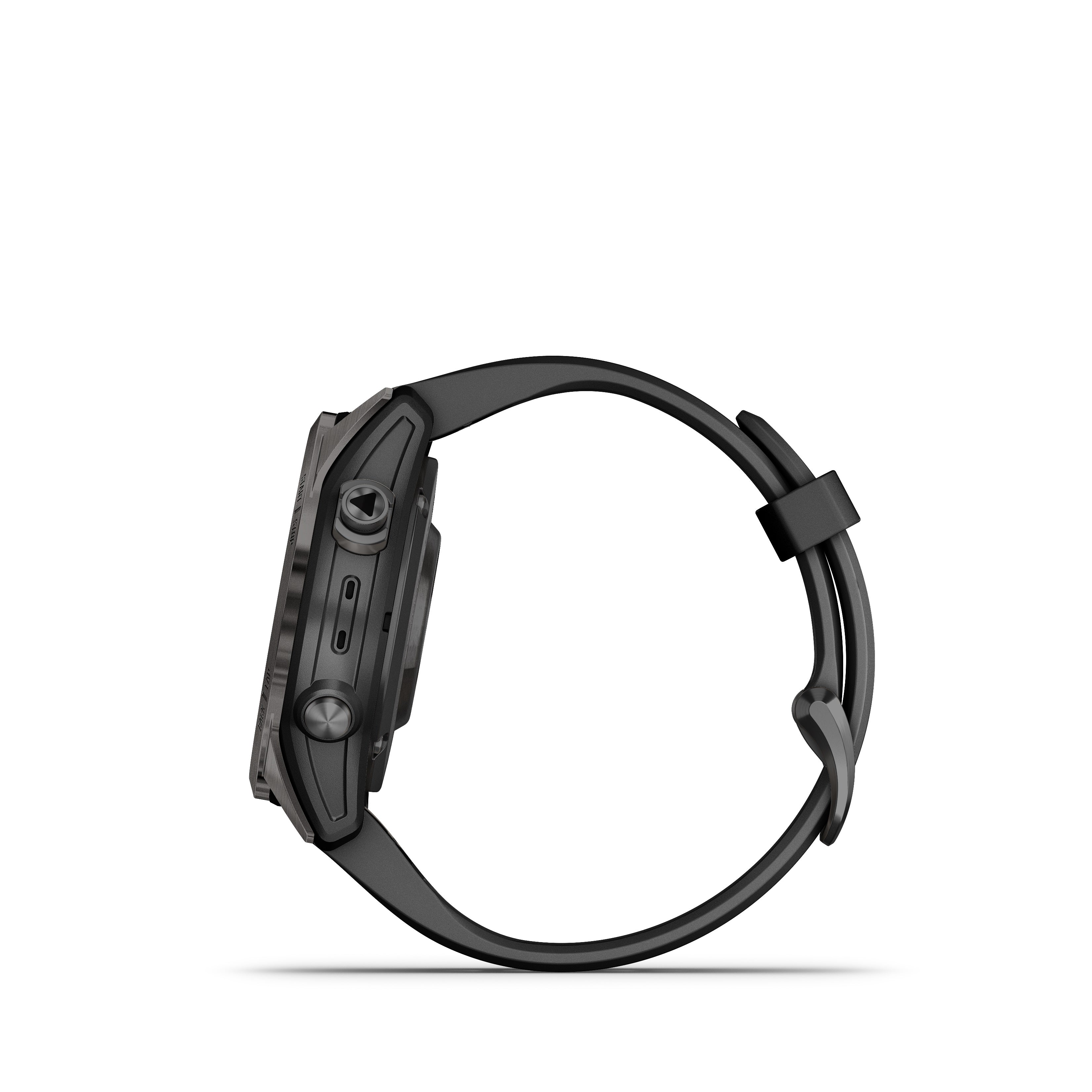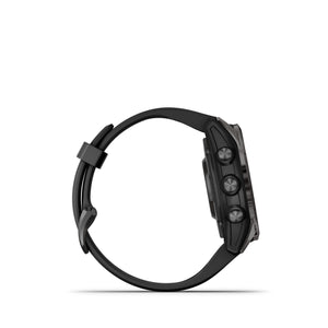 - Multisport GPS watch with a 1.2” display in a resilient 42 mm fiber-reinforced polymer case with a titanium bezel and rear cover