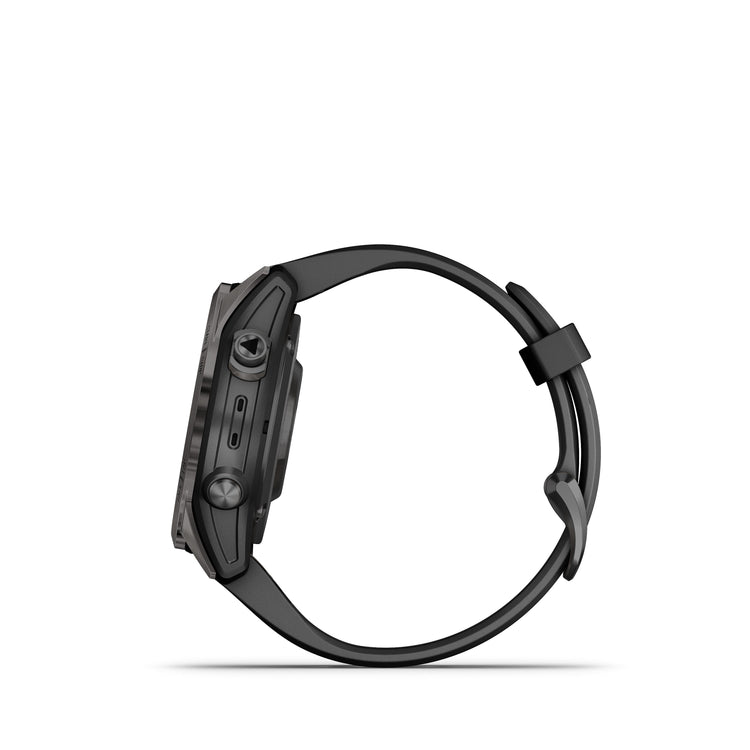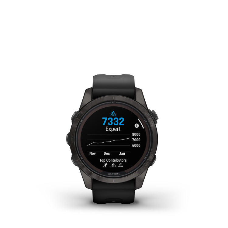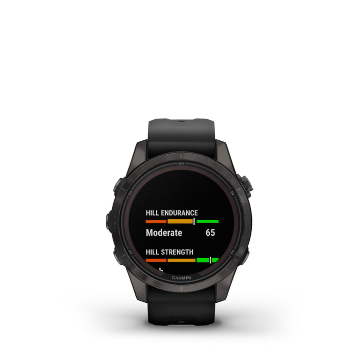 fēnix® 7S Pro Sapphire Solar is the ultimate multisport GPS smartwatch optimized for smaller wrists and designed to perform all day, every day. Get weeks of battery life with the scratch-resistant Power Sapphire™ solar charging lens. Meet any challenge with advanced training features such as hill score, which measures your climbing performance over time, and real-time stamina updates to gauge your stamina potential. For a more complete picture of your health, training and recovery, tap in to 24/7 health and wellness monitoring with advanced sleep tracking, HRV status, Pulse Ox and more (this is not a medical device, and data presented is intended to be a close estimation of metrics tracked; Pulse Ox not available in all countries). When the sun sets, use the LED flashlight to stay visible or find your way. Adventure far off the grid with up to 14 days of battery life in smartwatch mode with solar charging in 3 hours of direct sunlight (50,000 lux) per day.
