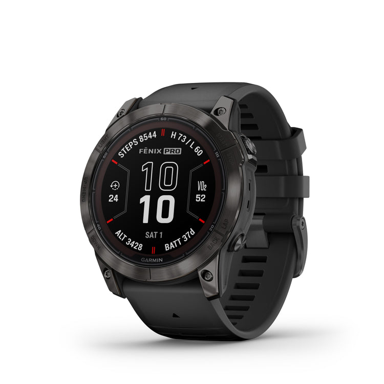 This ultimate multisport GPS smartwatch is designed to perform all day, every day. Conquer every hour with advanced training features, 24/7 health and wellness monitoring, an LED flashlight, and a rugged watch case built to endure. Based on the model you choose, the fenix®7 Pro series is designed with either a Power Glass or Power Sapphire solar charging lens to provide you with an extra-long battery life to help you venture beyond your limits. With solar charging, the fenix®7S Pro Sapphire Solar editions offer up to 14 days in smartwatch mode and up to 46 hours in GPS mode, the fenix®7 Pro Sapphire Solar editions offer up to 22 days in smartwatch mode and up to 73 hours in GPS mode, and the fenix®7X Pro Sapphire Solar editions offer up to 37 days in smartwatch mode and up to 122 hours in GPS mode..