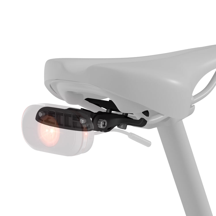 - Sleek and compact design offers multiple mounting options with universal seat rail mount or rack/pannier mount