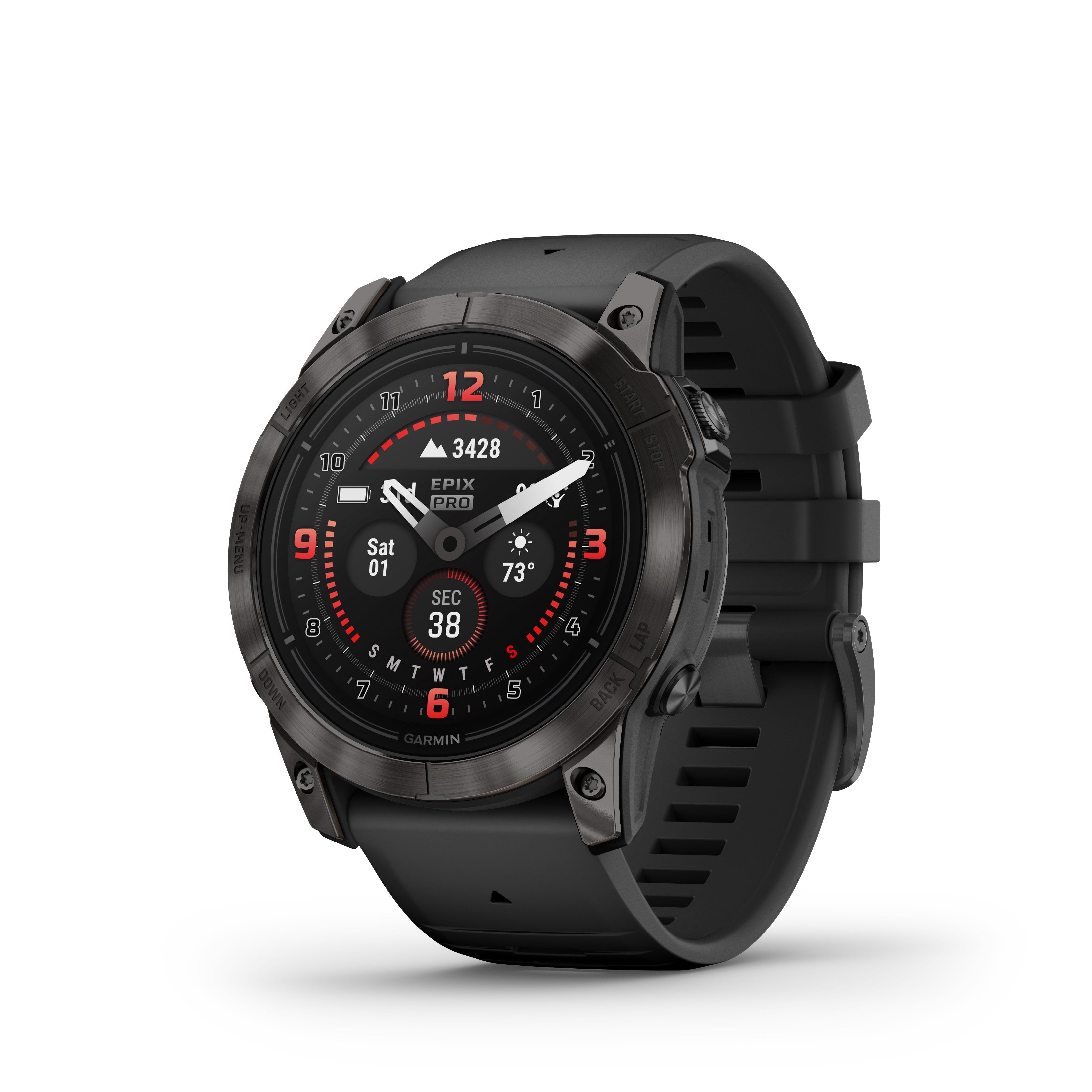 All day, every day — the epix™ Pro - Sapphire Edition smartwatch helps you conquer every hour. Designed for larger wrists, this ultimate high-performance smartwatch features a stunning AMOLED display. Go longer between charges with up to weeks of battery life in smartwatch mode. Rise to any challenge with advanced training features; hill score measures your climbing performance over time, and real-time stamina updates gauge your stamina potential. The bright LED flashlight provides convenient illumination when you need it. Prioritize your mental and physical wellness with 24/7 health monitoring features such as advanced sleep tracking, HRV status and more (data presented is intended to be a close estimation of metrics tracked). Navigate with preloaded TopoActive maps and ski resort maps; download even more regions for global adventures. Gain superior positioning accuracy in any environment while optimizing battery life, thanks to multi-band GPS with SatIQ™ technology.