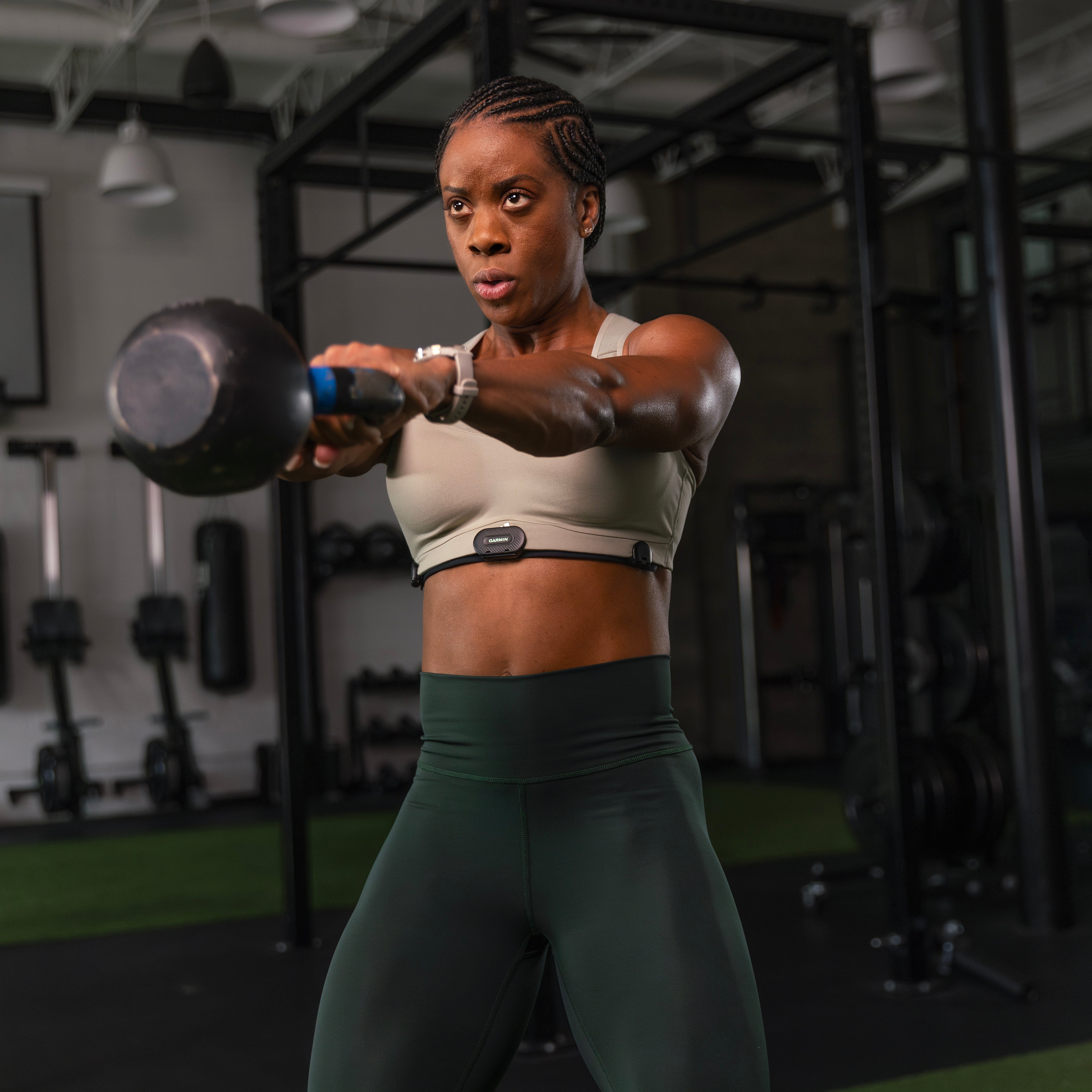 - Stores heart rate data during activities out of range of your smartwatch (must stop and start an activity on your compatible Garmin watch)