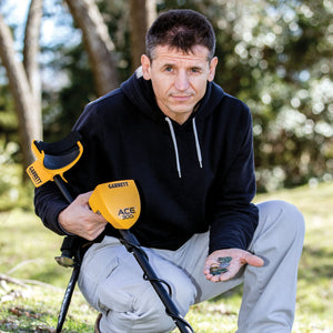 Garrett’s ACE 300 is a powerful performer at a bargain price. Its 7”x10” PROformance concentric searchcoil provides excellent detection depth, and a wealth of treasure-finding features. These include: five search modes, enhanced iron resolution control, non-motion electronic pinpointing and eight levels of sensitivity/depth adjustment. Its digital target ID system, a numeric identification scale from 0 to 99, helps more precisely identify a target metal’s conductivity. The ACE 300 includes an adjustable frequency to help eliminate or minimize interference caused by electrical sources or from other metal detectors.