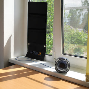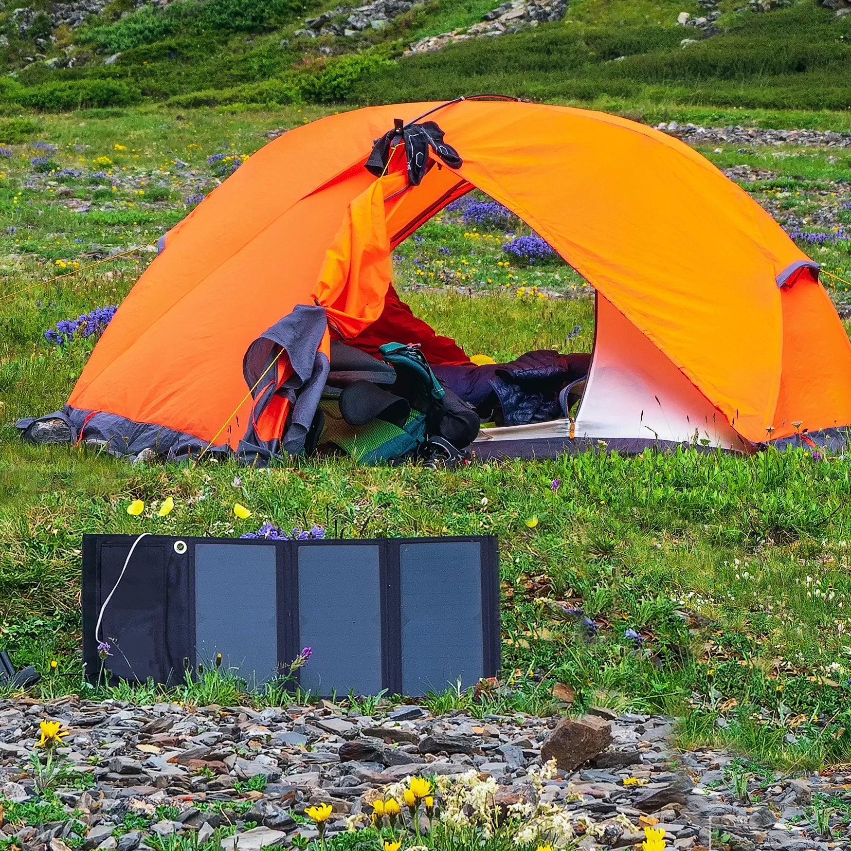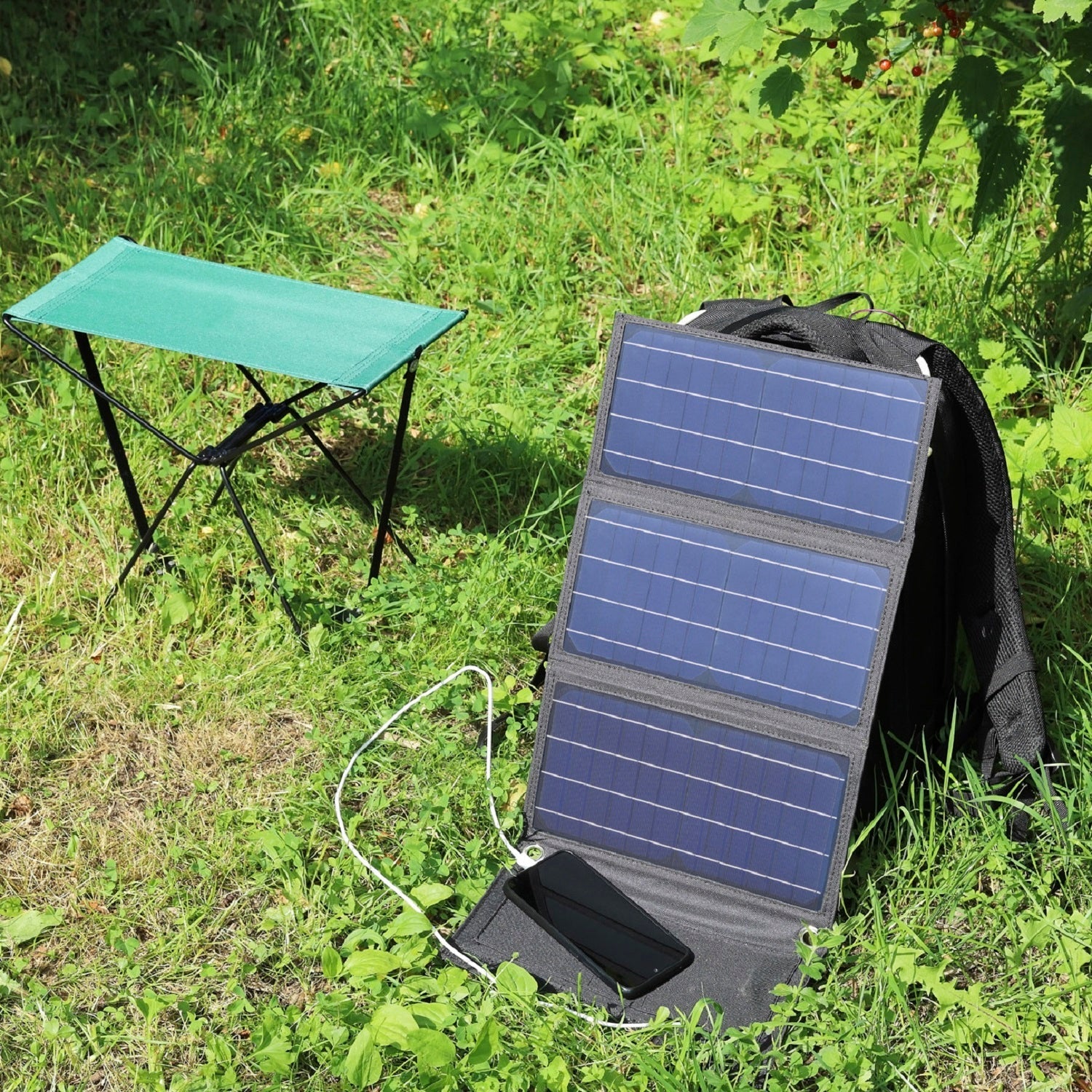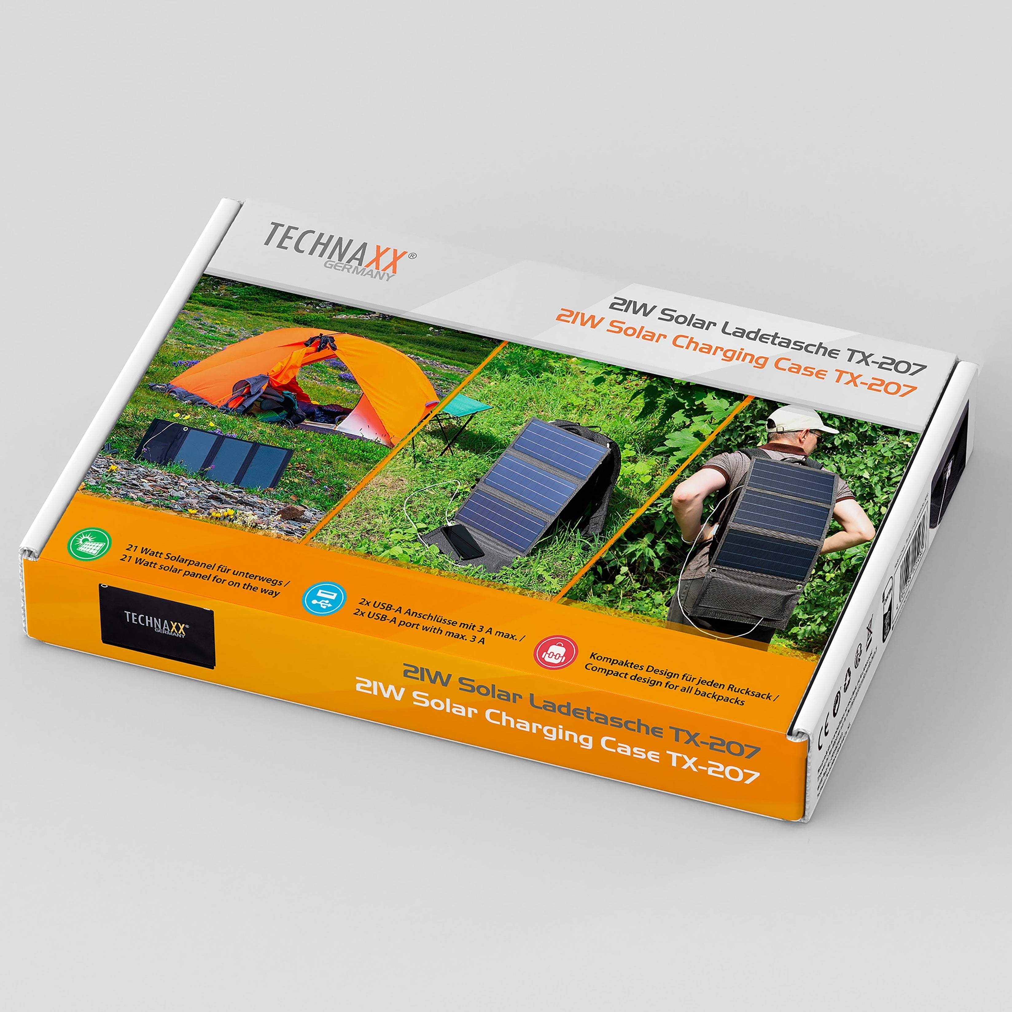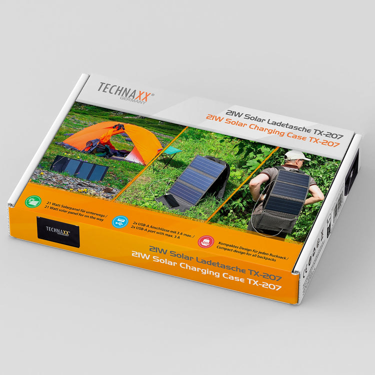 This solar charger is manufactured for camping trips or traveling to areas without power supply. The TX-207 is 2.2 lbs and has dimensions of 12.3" x 7.87" x 1.73"; it easily fits in a backpack so you can use the solar panel on the go and charge devices everywhere. Put the solar panel in a bright place with long exposure to sunlight, the best performance is achieved when the sun hits the panel at an angle of 90°; avoid shady areas. The TX-207 monocrystalline solar cell converts up to 19% of solar energy into free energy with sufficient sunlight, which is better than polycrystalline solar panels in low light conditions.