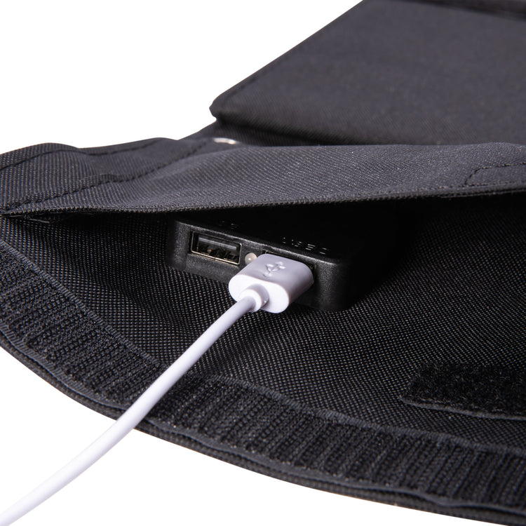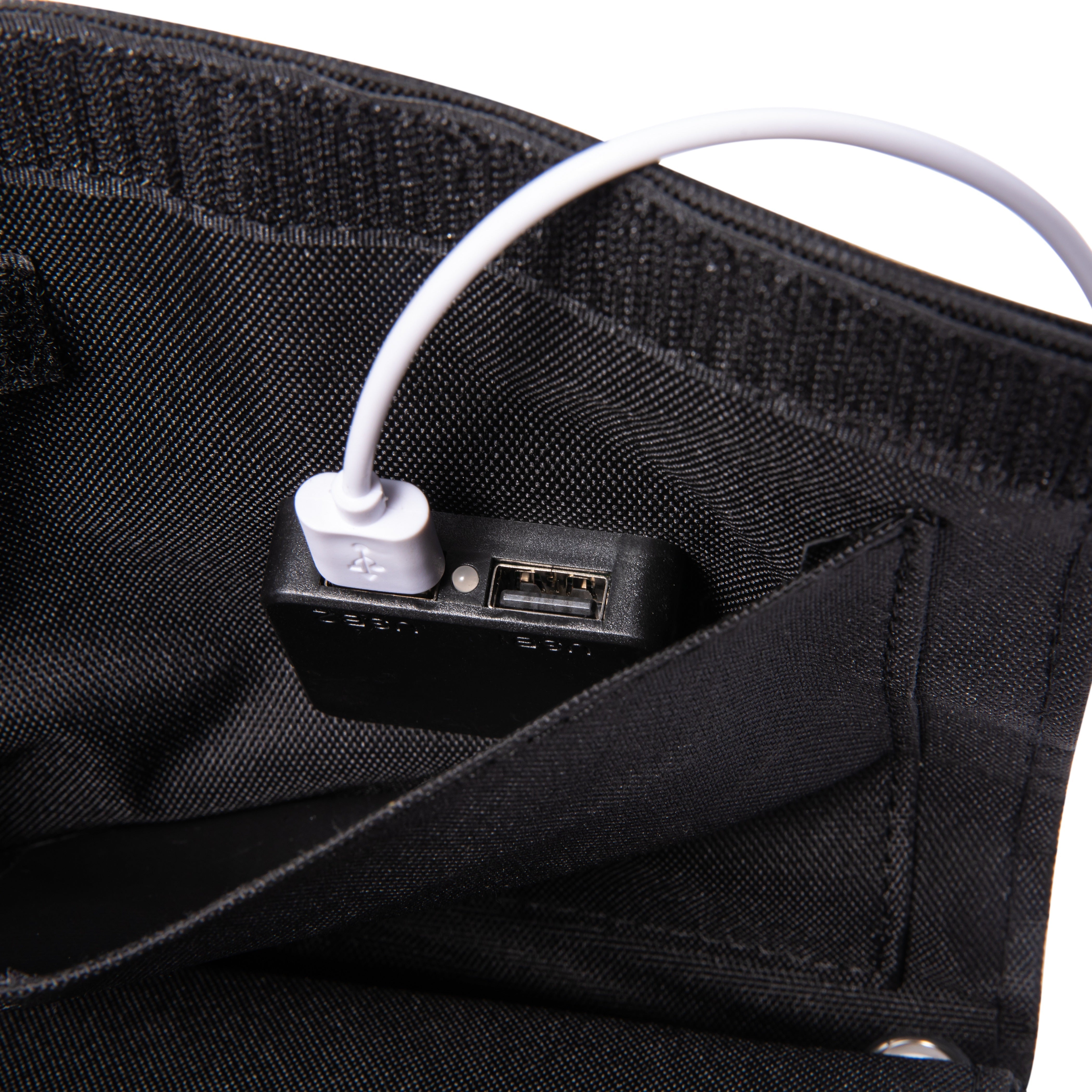 - Two USB ports in one pocket for easy charging of power banks and smartphones