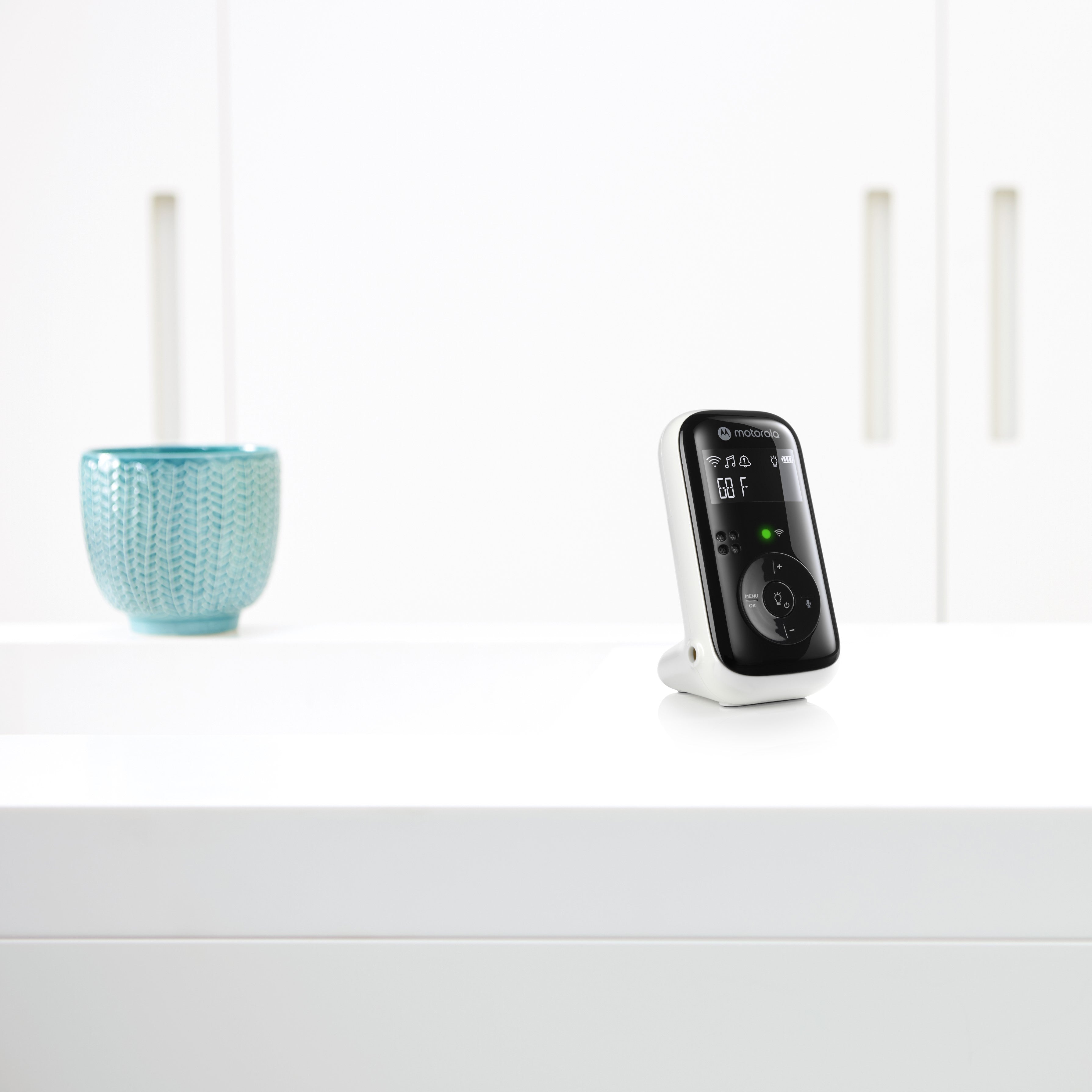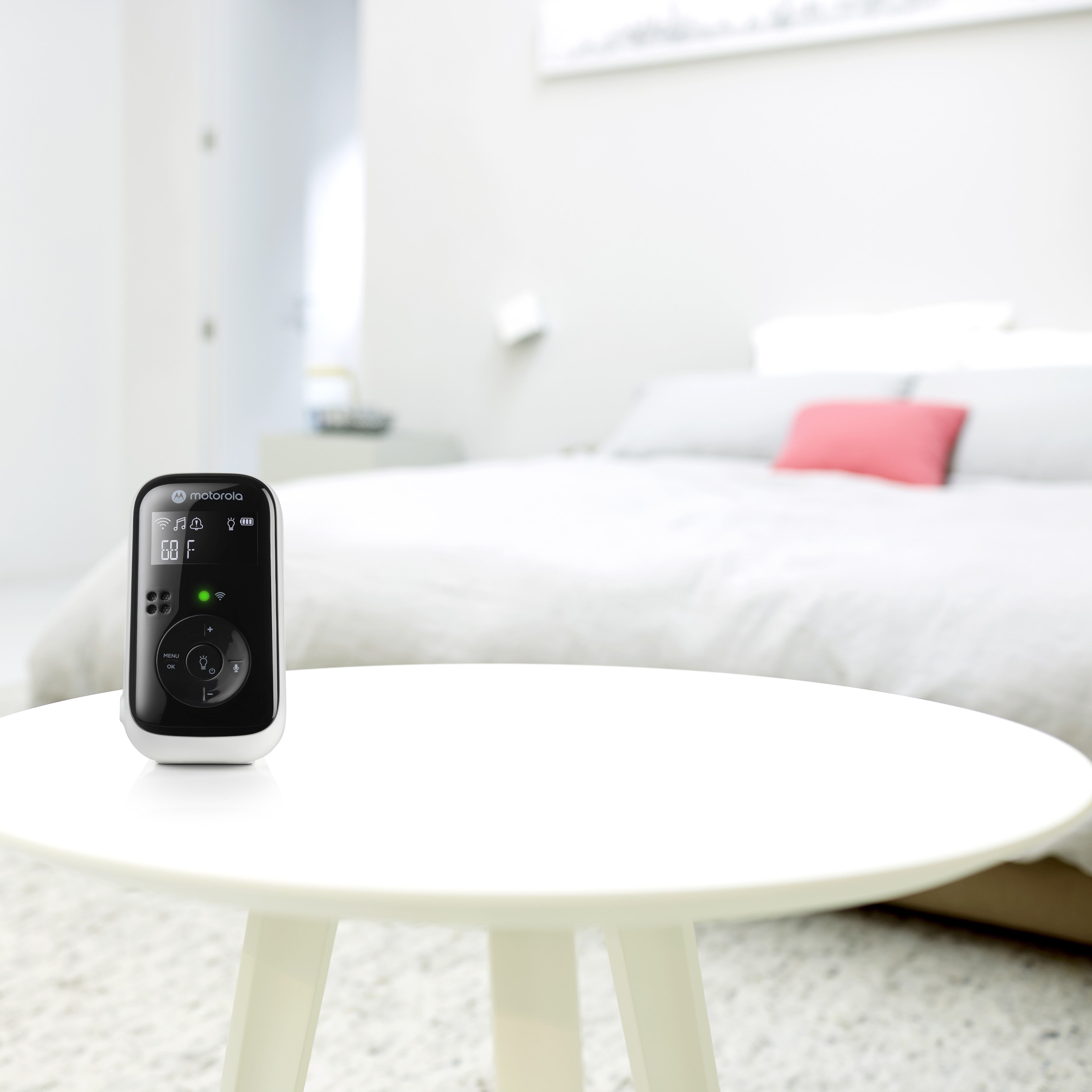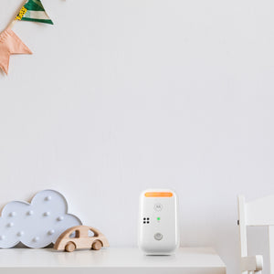 The Motorola PIP11 is a stylish audio baby monitor that lets you maintain two-way communication with your baby to calm your little one and make sure it's always the perfect temperature in their room. A night light and lullabies add some soothing sounds to make bedtime easier for everyone. Keeping you connected when it matters the most.