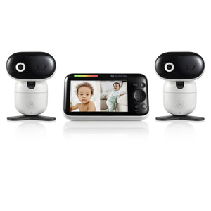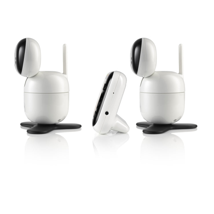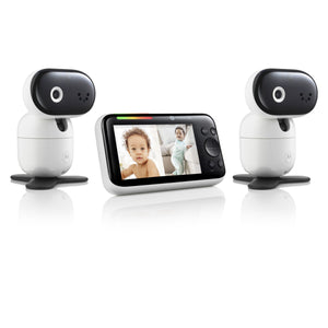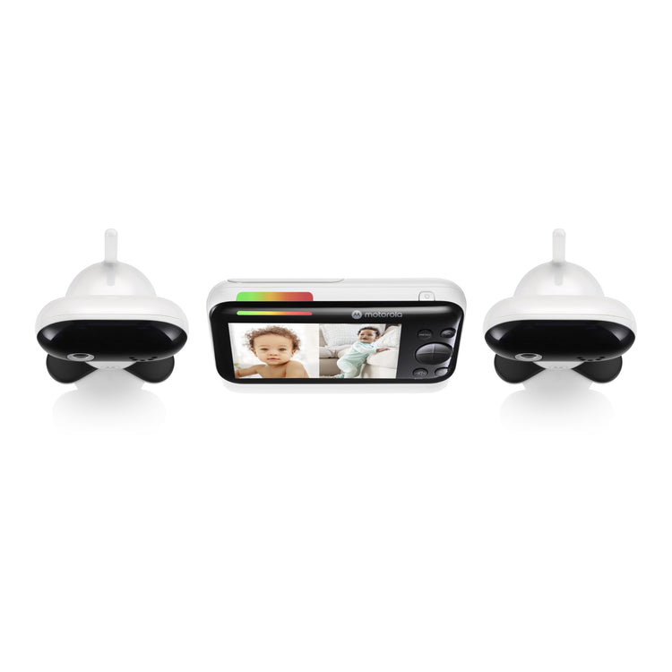PIP, the smart friendly night vision HD camera with remote pan, tilt and zoom, so you can keep an eye on your baby no matter where you are. Both cameras can be controlled remotely from either the monitor or from your smartphone using the Motorola Nursery app. With the split screen functionality, you can keep an eye on two rooms or two babies’ side by side on the same screen in real time. The large color 5” portable monitor has two noise level indicator bars and much more, so you never have to worry about not hearing your baby. With our advanced triple layer security protection exclusive to Motorola Nursery, we’ve got your little one covered. Share those previous moments securely with only the people you trust, giving you peace of mind and your baby’s safety.