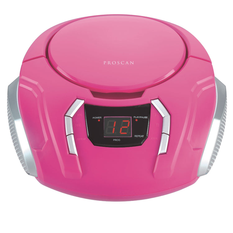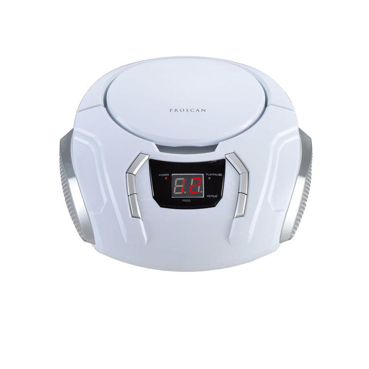 This amazing boombox is a one of a kind! The bright LED display along with the top loading CD mechanism are just the start. The sound quality is unparalleled for the price! Proscan has knocked it out of the park on this product which includes AC/DC operation, an AUX input and full AM/FM Radio options. If you are looking for full sound and portability at an awesome price; this is your boombox. Take it to the beach, the pool, use it in the kitchen or out on the patio. Proscan has built a quality portable CD Player that everyone in the family can enjoy.