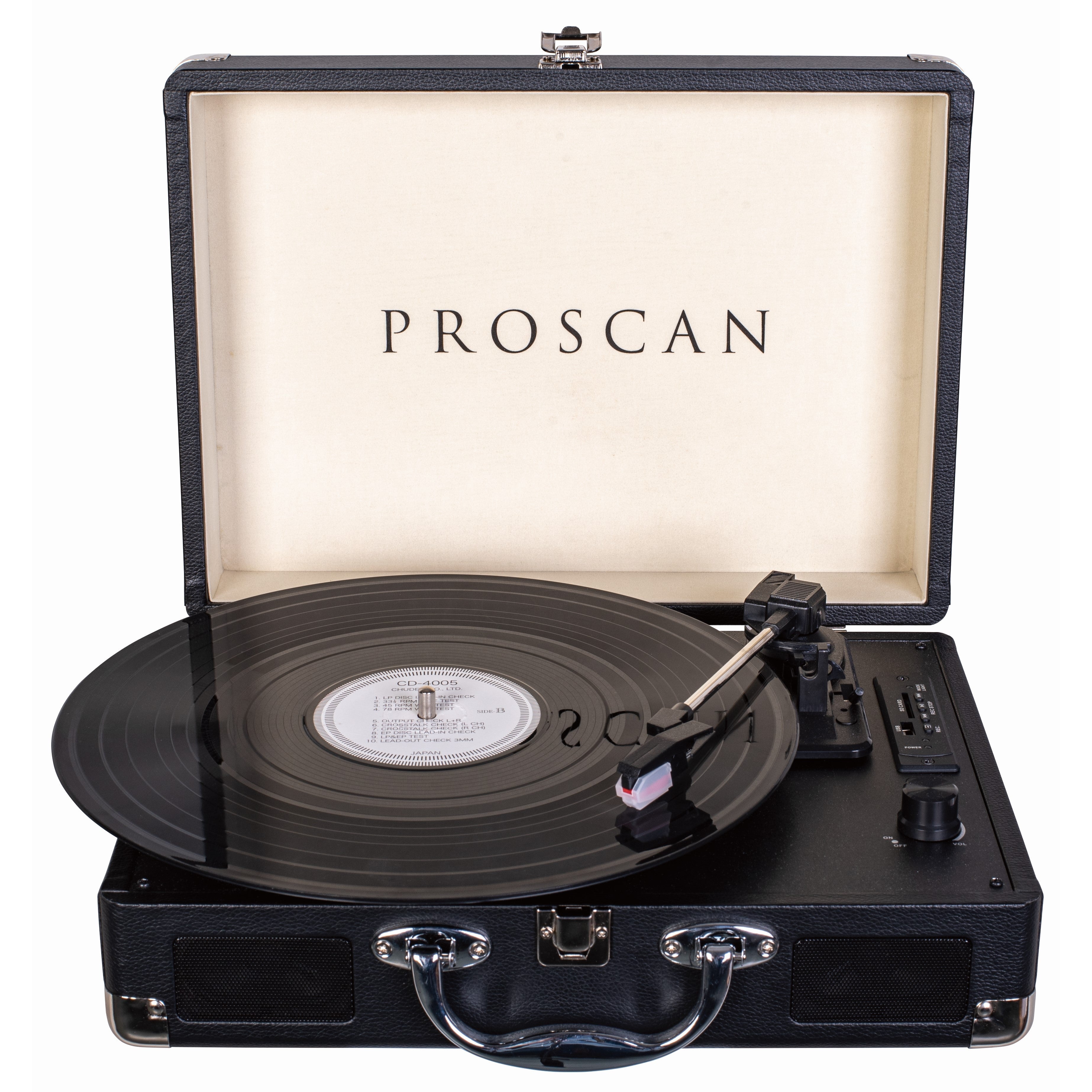 - Ceramic stereo cartridge with stylus and a portable suitcase design ensure quality and style