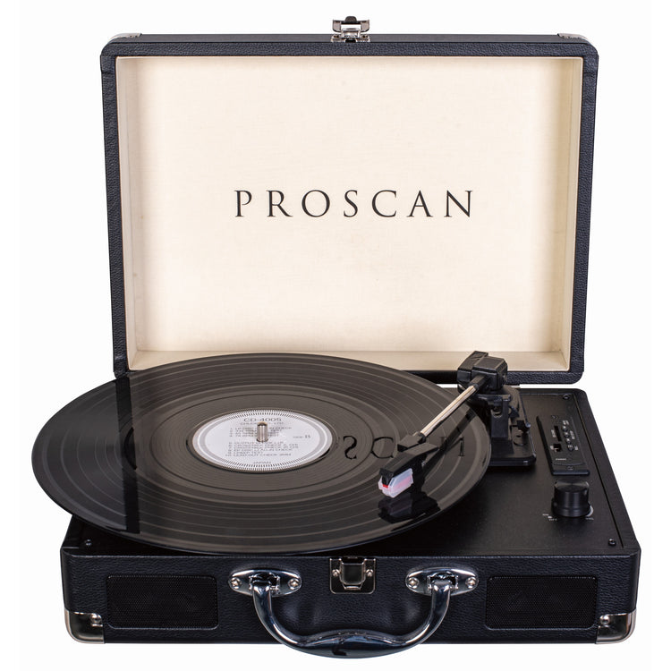 Enjoy classic vinyl records the way they were intended on the Proscan PTT105BT USB turntable. Belt-driven and equipped with the three most common speeds, it plays all of your favourite records. With USB and SD card inputs, it's easy to convert those records into digital files for preservation and playback versatility.