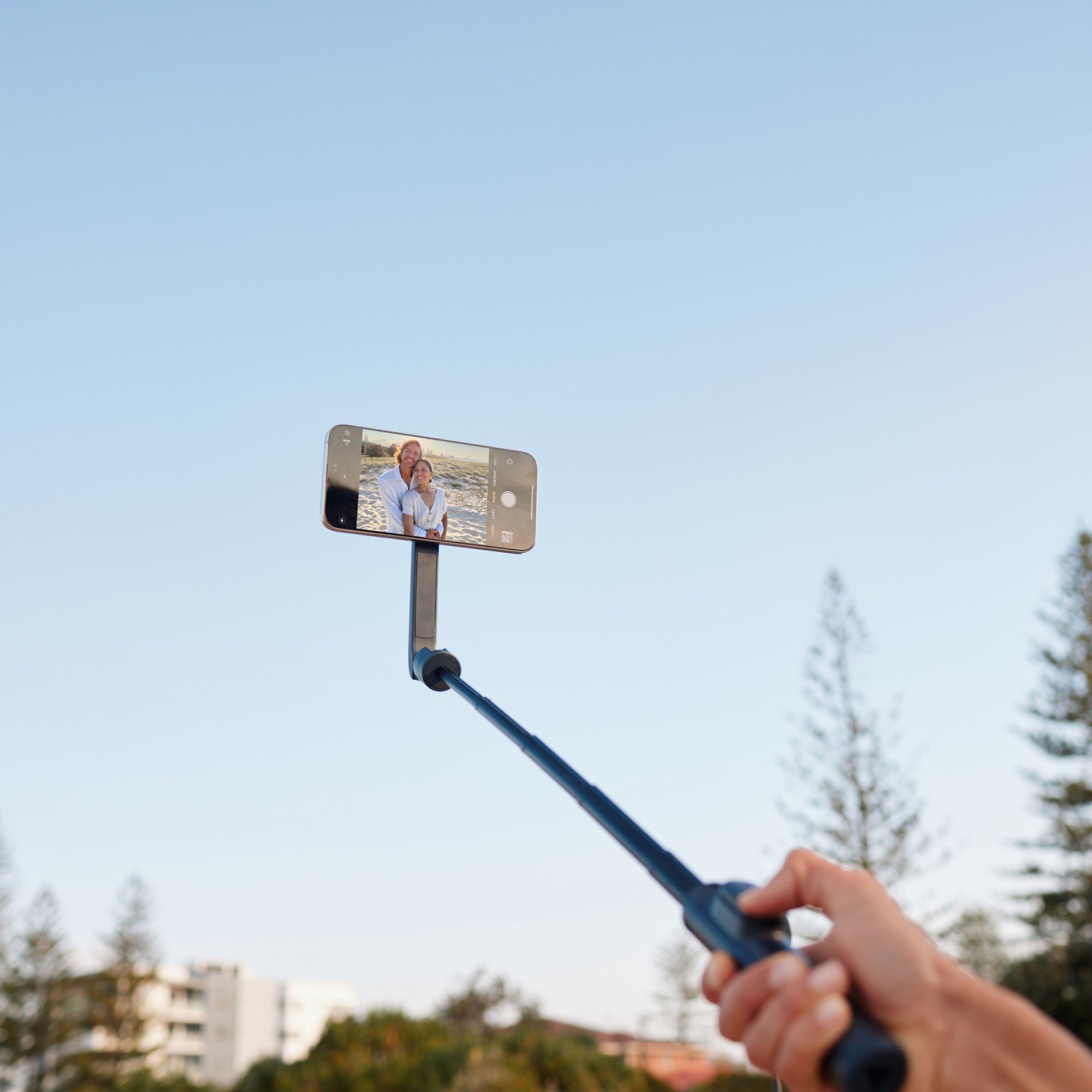 SnapStand Selfie—your portable assistant for capturing the perfect selfie or setting up a reliable tripod for filming and video calls. With an extendable height of up to 75cm, it serves as the perfect arm extension, and its foldable design makes it as compact as an iPhone Pro Max for easy travel. Seamlessly compatible with the SnapSeries, the SnapStand Selfie offers a complete, on-the-go content creation solution with a sturdy, secure build.