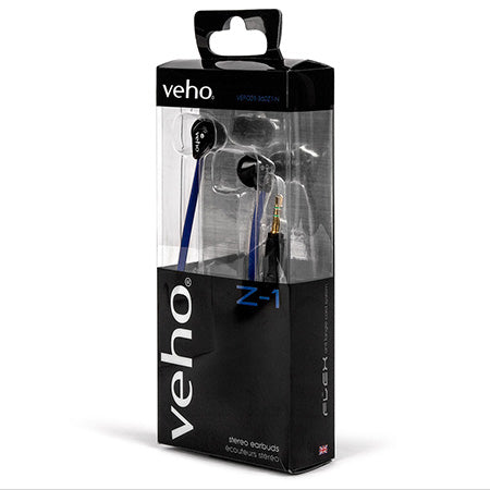 Veho Z-1 Stereo Noise Isolating Earbuds with Flat Flex Anti Tangle Cord