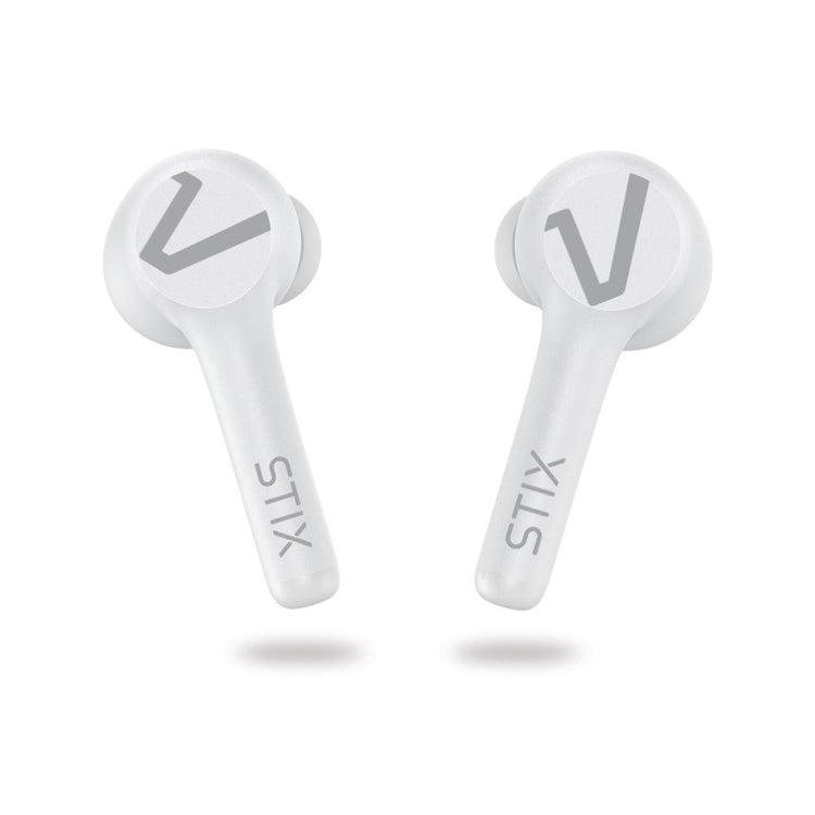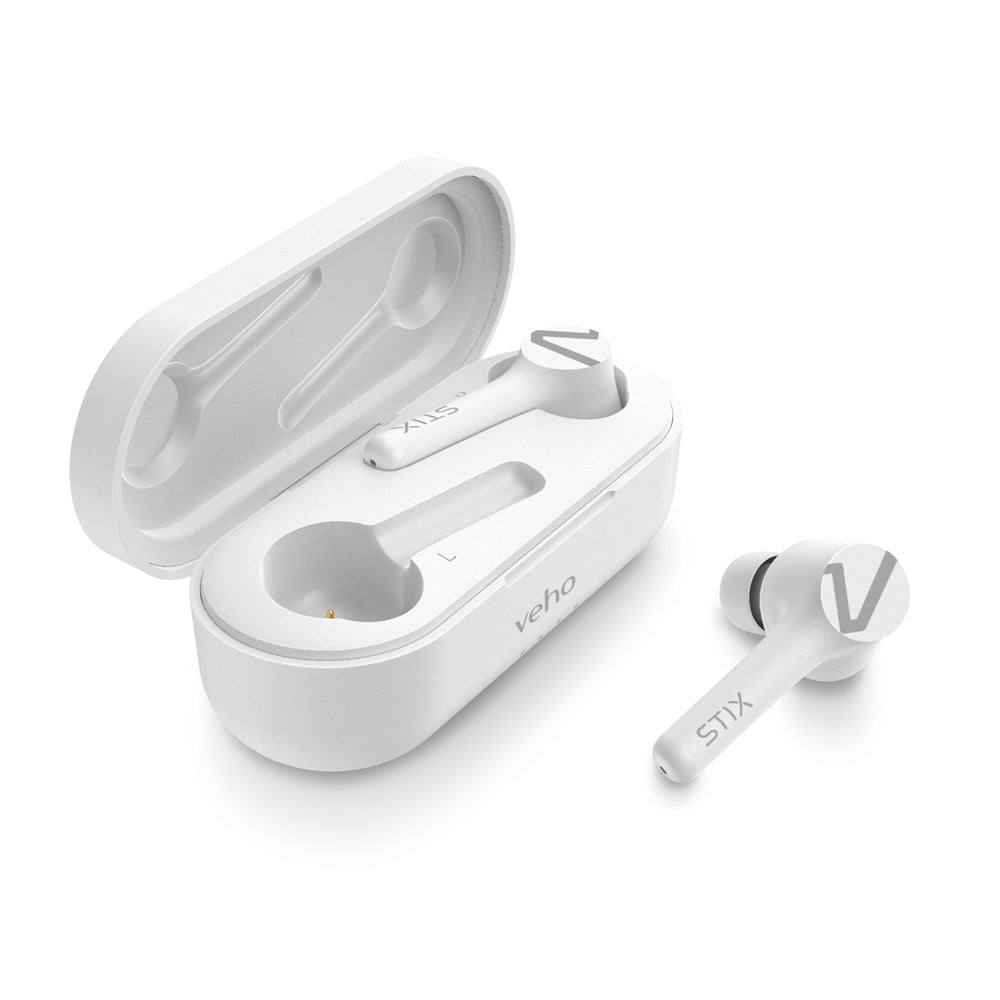 The Veho STIX true wireless Bluetooth earphones feature water resistance body, twin microphones, and smart touch control. Thanks to the rechargeable docking case, STIX have extended battery life which allows multiple charges to extend the play time of your STIX up to 20 hours. Enjoy the high quality sound of your music while looking stylish!