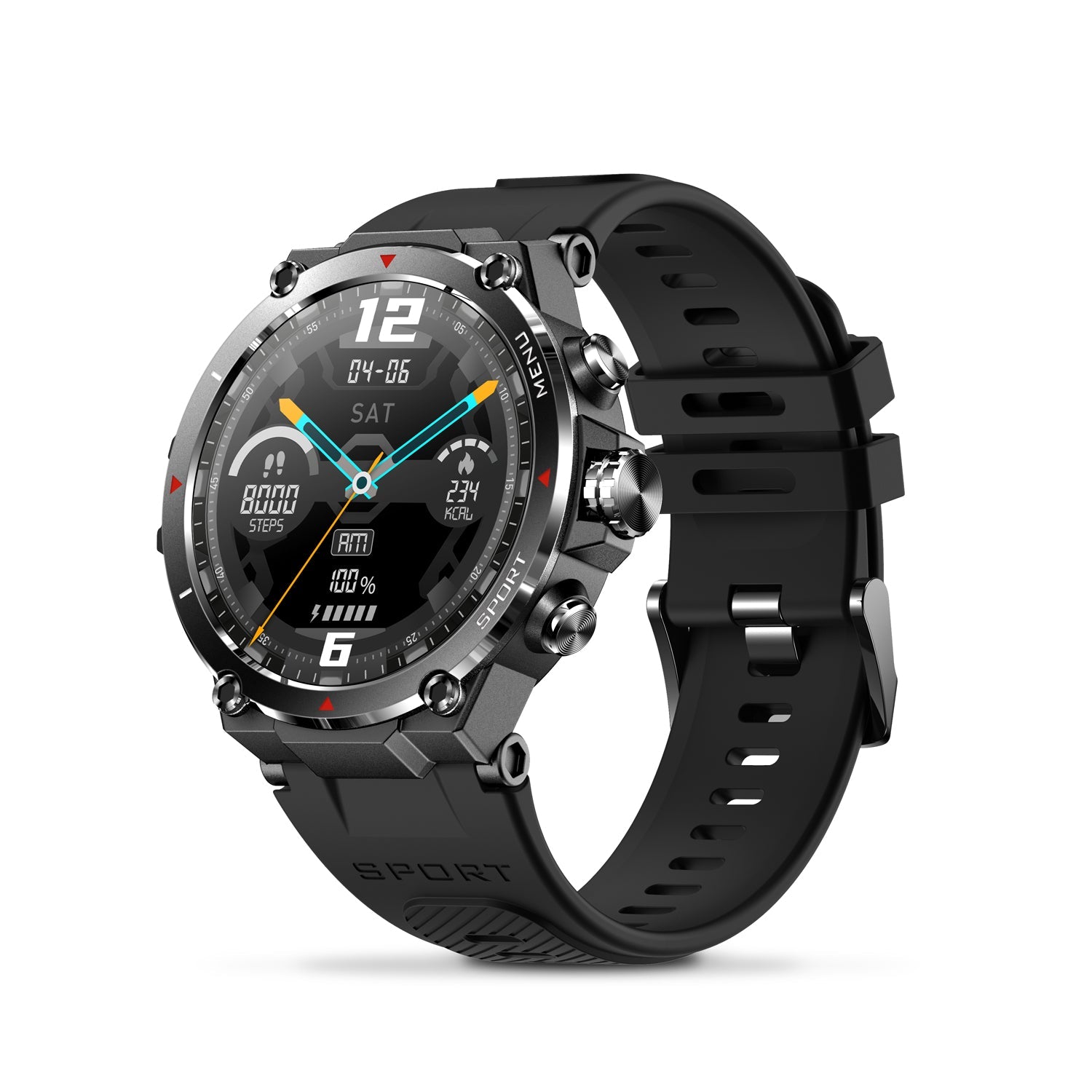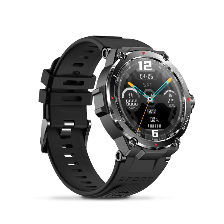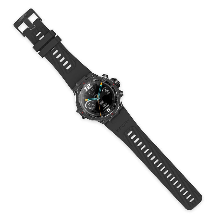 The Veho Kuzo F1-S is a rugged and durable smartwatch designed for adventure, sports, and the outdoors, with AMOLED touchscreen and built-in GPS. The Kuzo F1-S is a sleek and stylish timepiece packed with impressive features. Its 1.3-inch AMOLED display offers vibrant colours, while its lightweight rugged design ensures comfortable wear in any environment. With comprehensive health tracking capabilities, including heart rate monitoring, blood oxygen levels and sleep analysis, the F1-S helps you make informed lifestyle choices. Stay connected with smart notifications for calls, messages, and social media alerts. The watch's intuitive interface allows you to control music playback and manage alerts. With an IP68 water and dust resistance rating, it's perfect for workouts and outdoor adventures. Personalise your style with customisable watch faces and universal strap mount. The Kuzo F1-S is the ultimate blend of fashion and functionality; stay connected, stay active, and stay stylish.