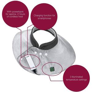The Beurer Portable Heated Shoulder Wrap is a true all rounder: in the stadium, on a park bench, in the house or in the car - enjoy soothing warmth wherever you go! The powerful power bank gives approximately 2 hours of cordless heat, whilst also allowing you to charge your smartphone.