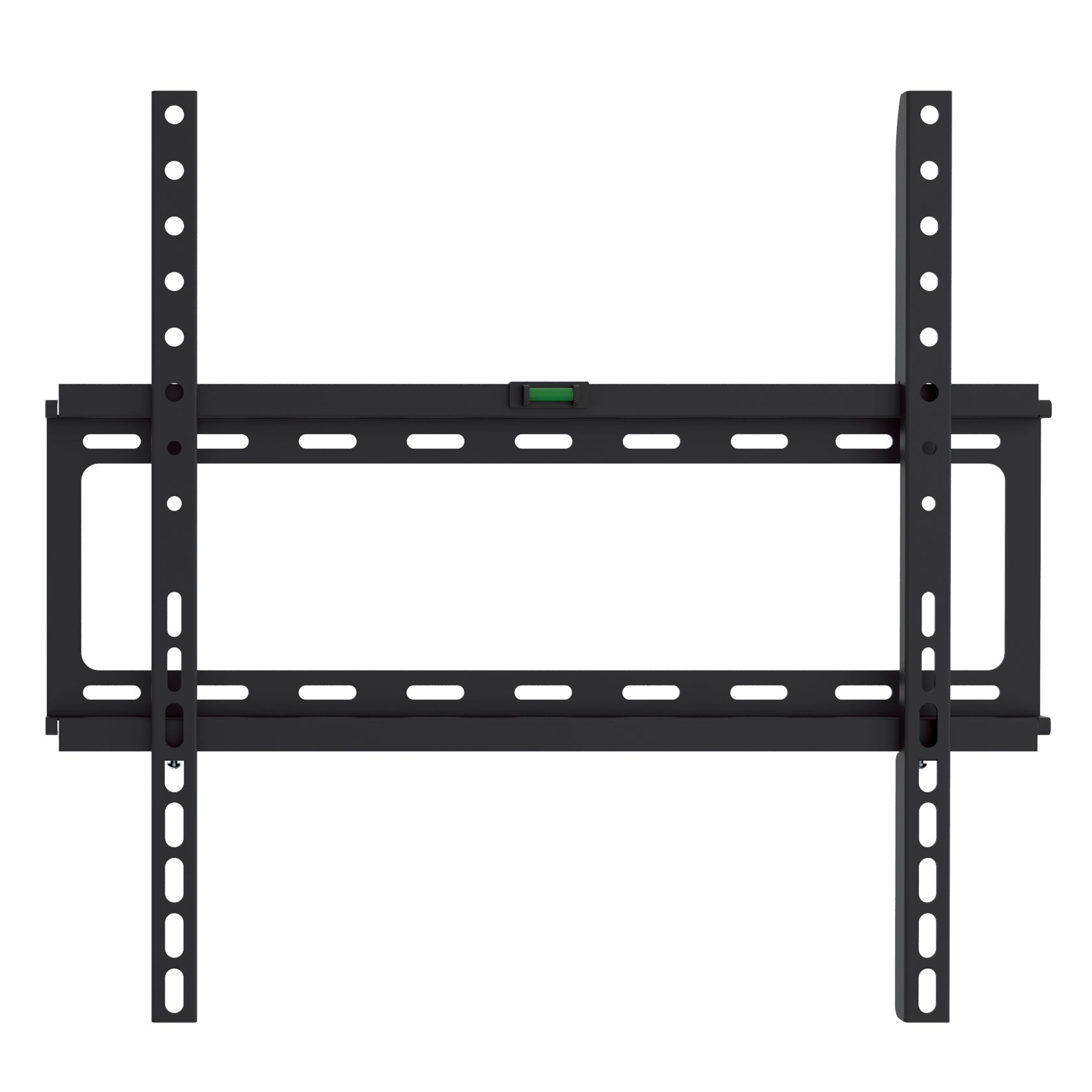 This sturdy steel frame can hold up to 110 lbs and will fit any flat panel TV between 23"-46". Mount Your TV with ease using the built in level to optimize your viewing experience. CJ Tech's low profile mount fits tight to your wall and spans 2 studs for an excellent footing so you know your TV is securely fastened.