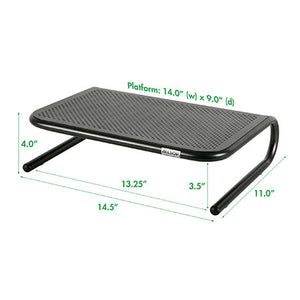 - Clean modern design raises your monitor 4 inches to a comfortable and ergonomically correct viewing height to reduce neck strain