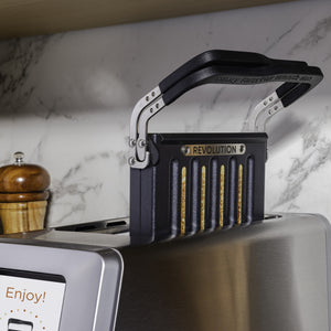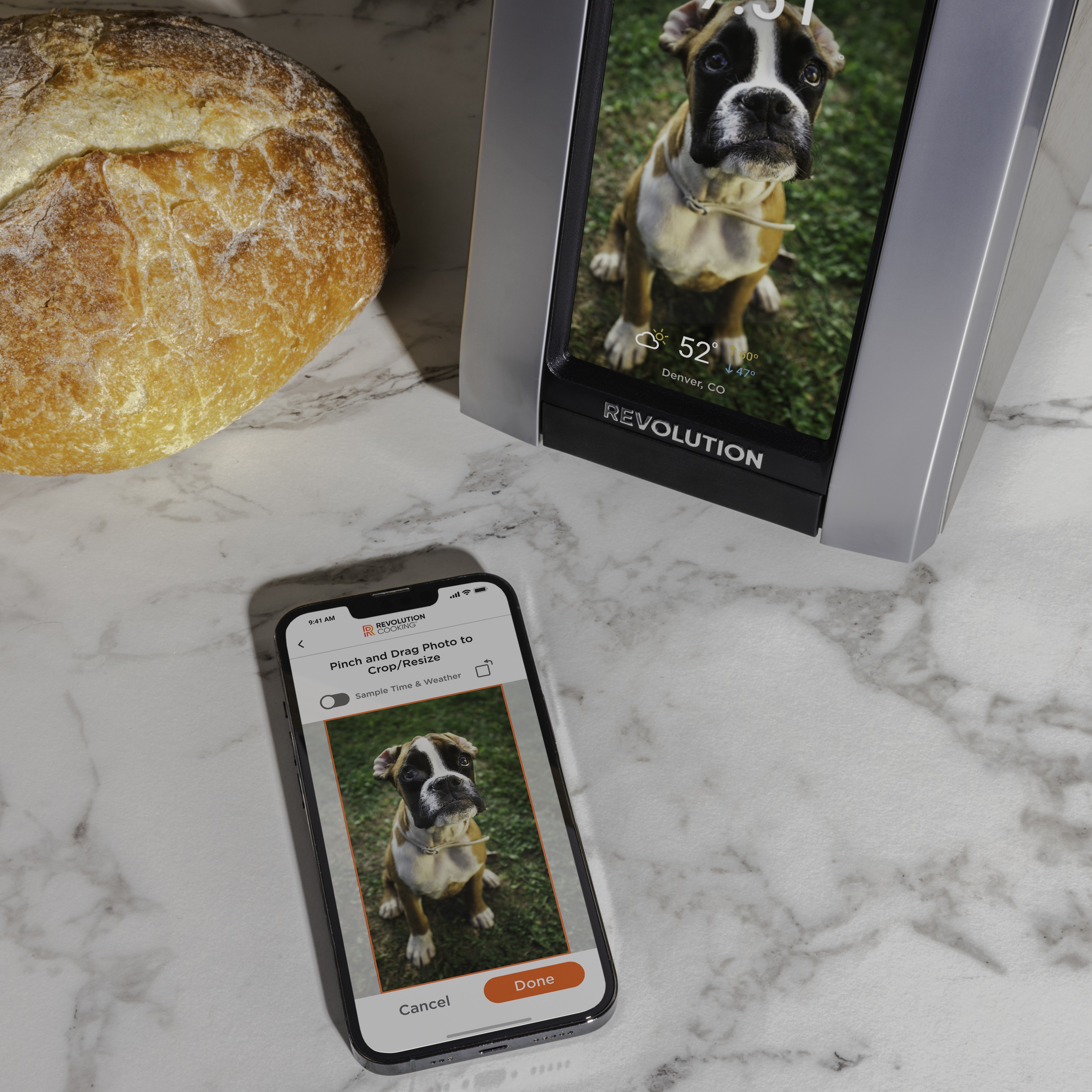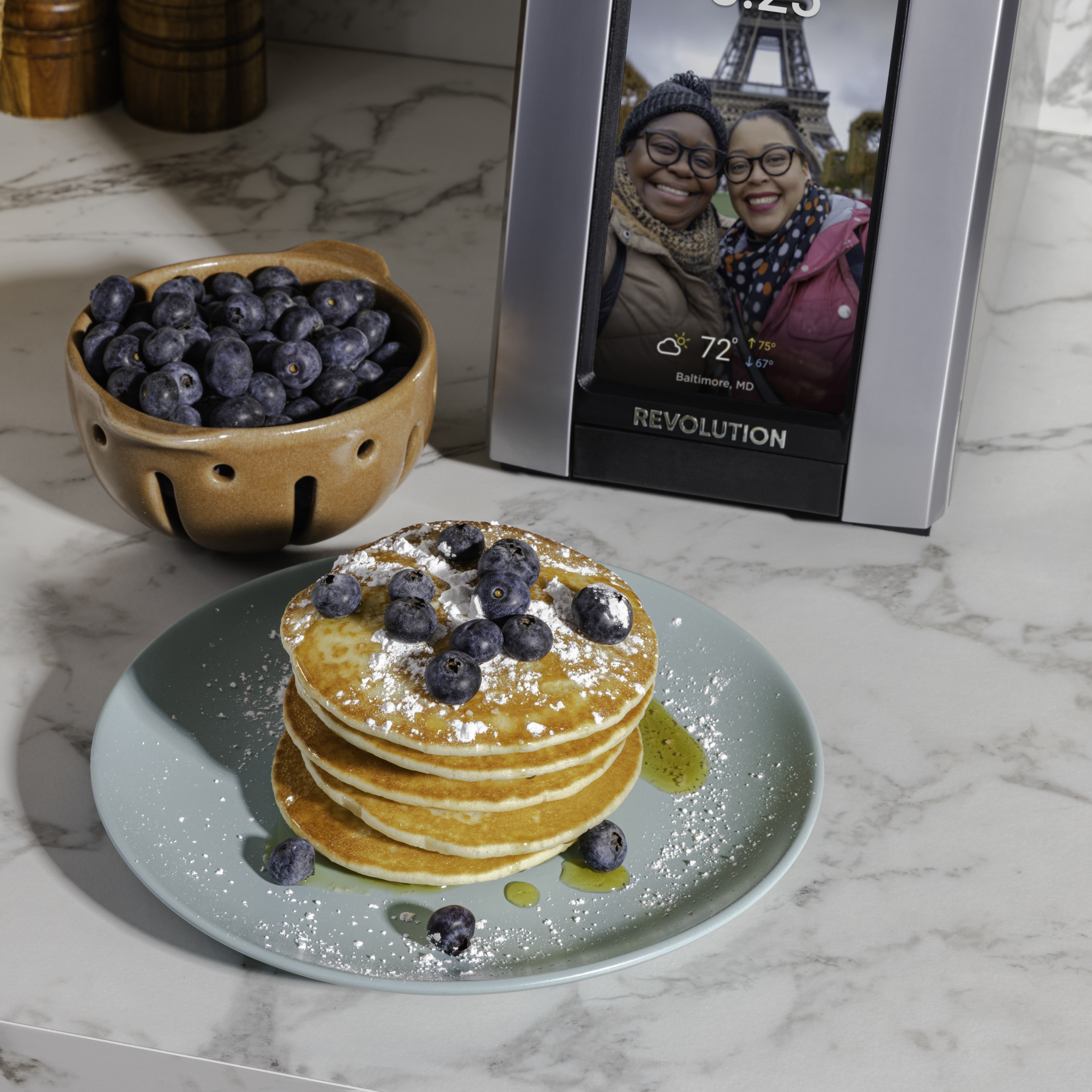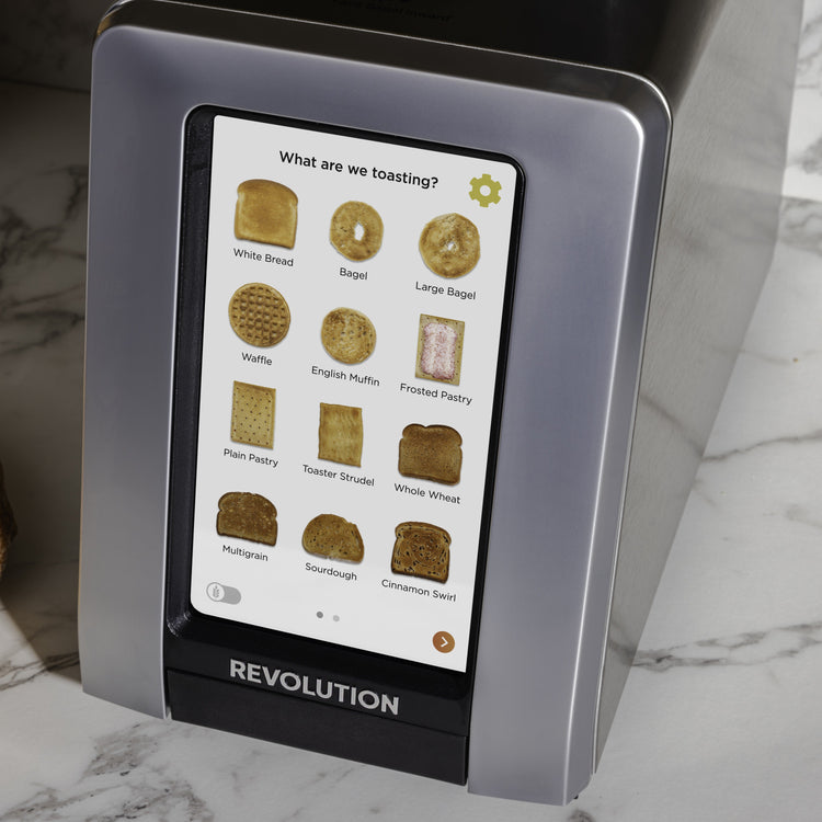 Made to toast the foods you love, the Revolution R180 Connect is an evolutionary update to the iconic R180; the ultimate smart home gadget, this 2-slice digital toaster features a touchscreen interface complete with 6 preset bread type algorithms that expertly toast a wide range of foods, plus connected features that include Wi-Fi, auto-set clock, weather widget, and over-the-air updates. Wi-Fi is accessed in the on-screen settings menu, and is entirely optional, and does not require an app. Once connected, no personal or usage information is collected from your toaster. The Revolution R180 Connect Plus incorporates a number of new features that have been carefully collected from customers over the years. A highly requested feature is to utilize our large 7” LCD screen to allow the user to add their own photos directly to the screen. You can add 24 photos that will cycle through when the toaster is not in use .