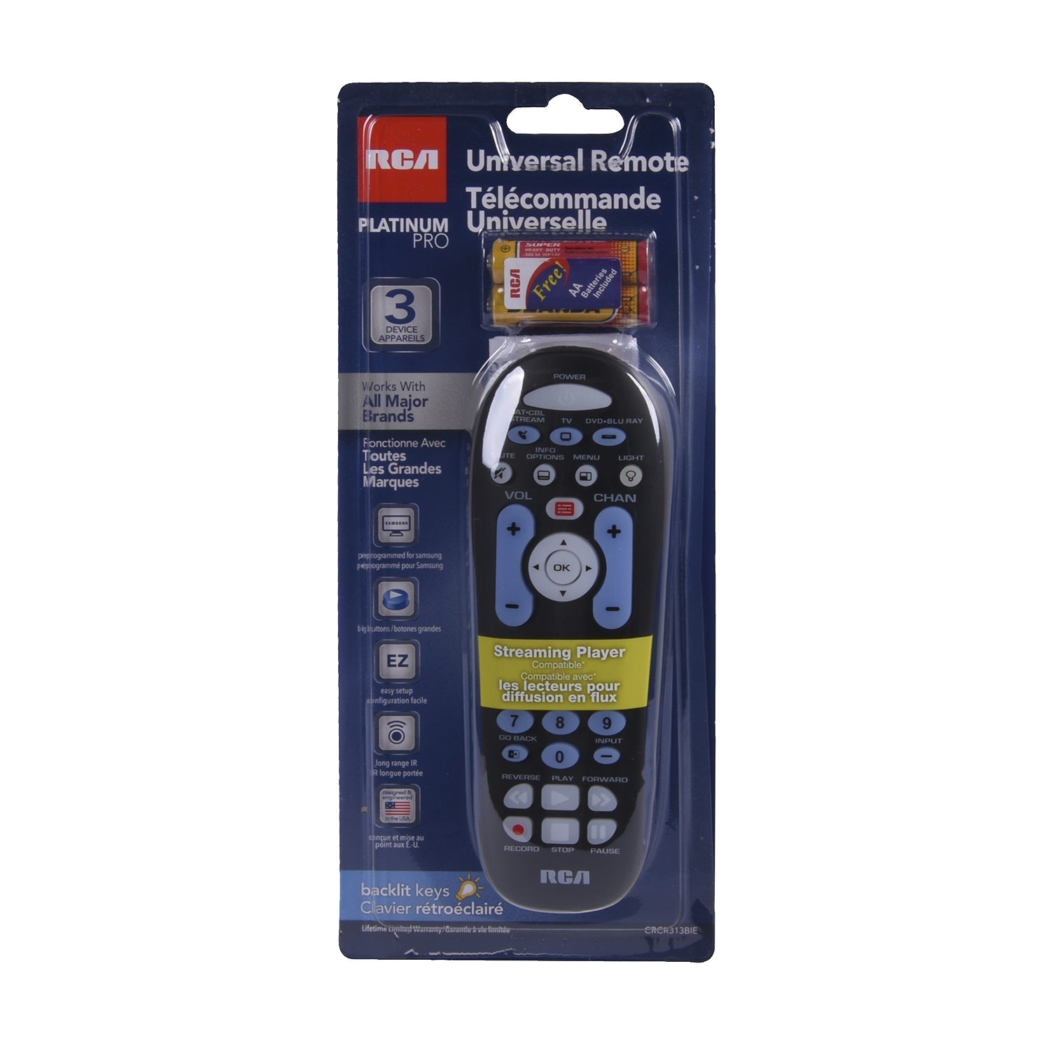 - Controls streaming video players including Apple, Roku and Sony plus TV, SAT/CBL/DTC, DVD/BLU RAY