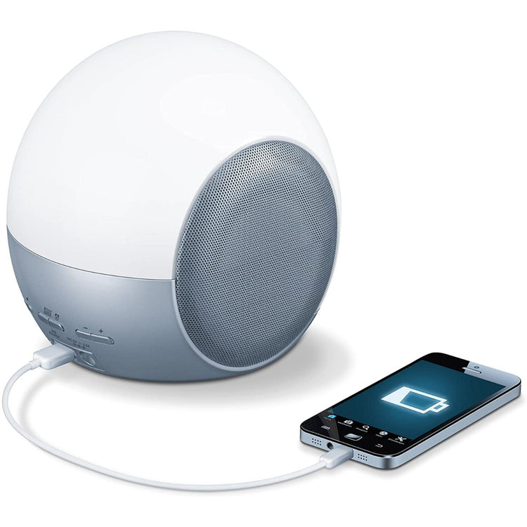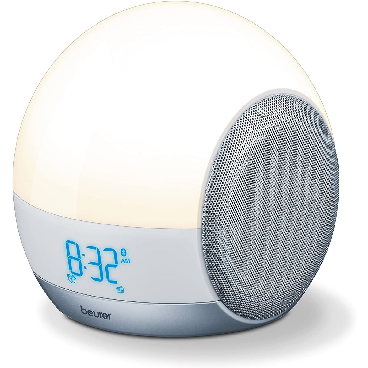 The 4-in-1 wake up light, mood light, reading lamp and music station in one product! The wake up light leaves nothing to be desired and ensures you have a relaxed start to the day. The bright light helps you wake up naturally and has simulated colours for sunrise and sunset. You can setup an normal alarm or choose between radio and 10 wake-up melodies to start your day. The 4-in-1 Wakeup Light by Beurer is convient and goes hand to hand with the free "beurer LightUp" app.